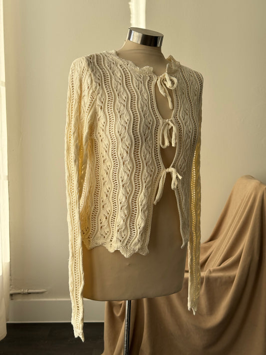 Lila Cotton Crochet Toe Front Cardigan In Cream