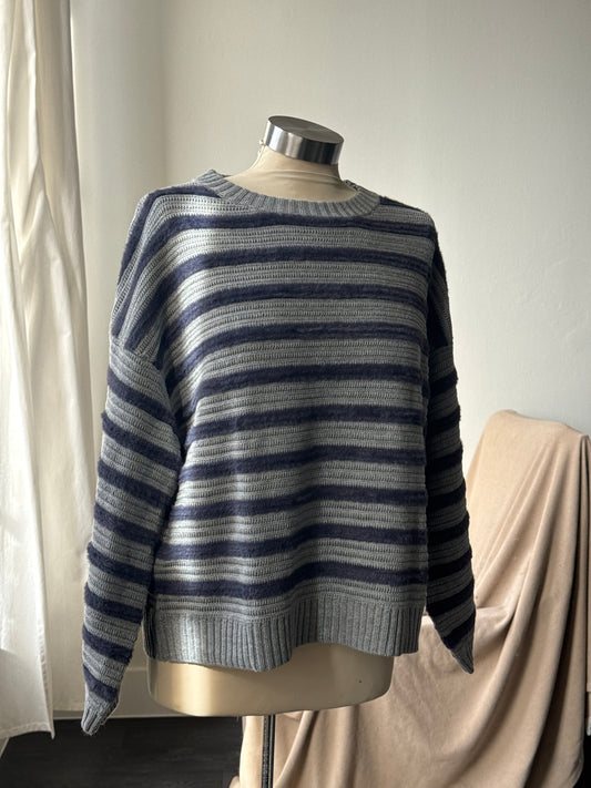 Henry Cotton Crew Neck Striped Pullover Sweater In Midnight Navy