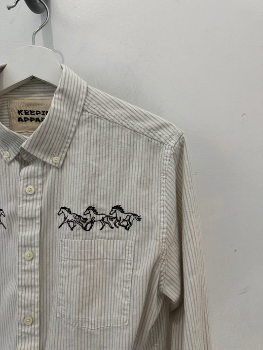 Lawrence Handcrafted Cropped Cotton long sleeve Button Down In Running Horses