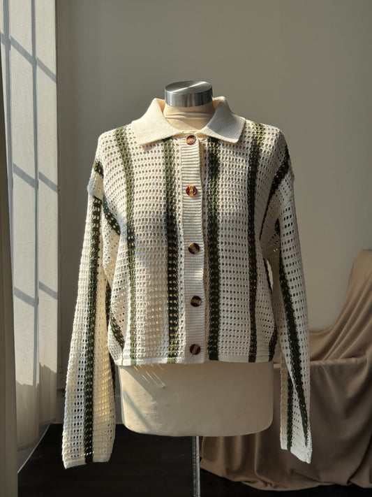 Solana Cotton Crochet Striped Button Down In Forest