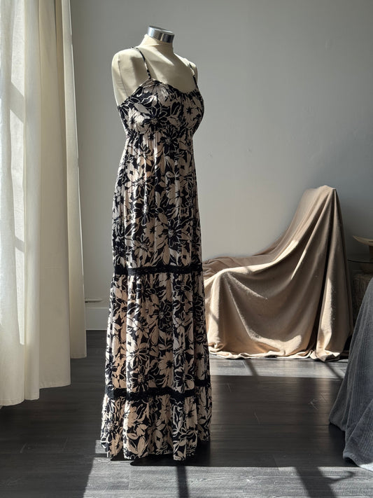 Floral Tired Maxi Dress In Black Taupe