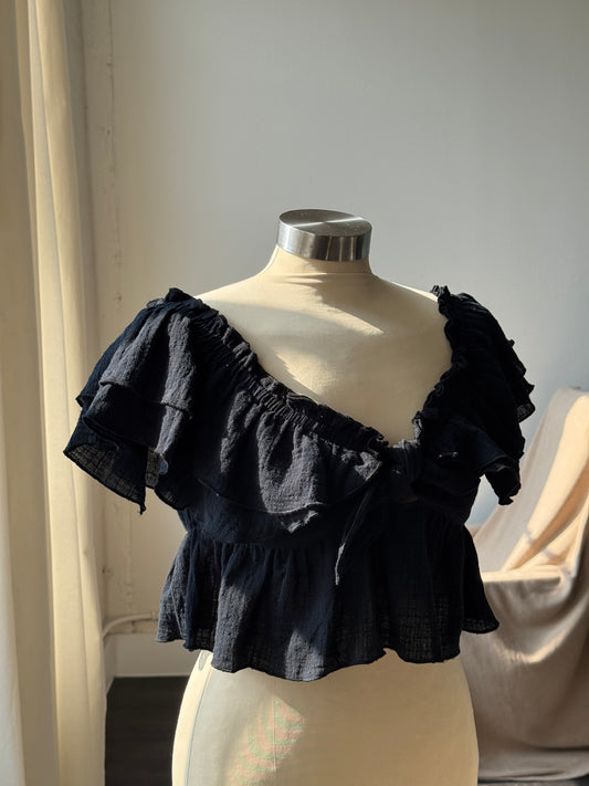 Helena Cotton Ruffle Cropped Top In Black