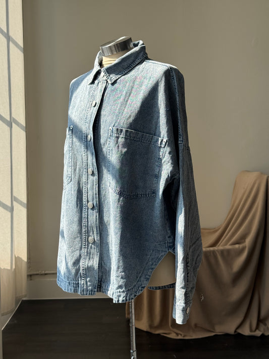 Lois Cotton Acid Wash Shacket In Vintage Denim