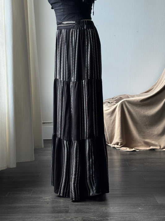 Melissa Embroidered Striped Slit Maxi Skirt In Blush Black