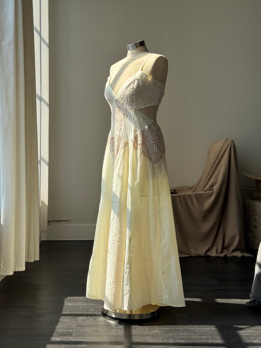 Jelena Cotton Eyelet Open Back Maxi Dress In Vintage Ivory