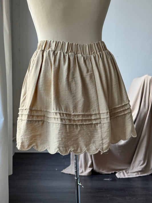 Ginny Cotton Pleated & Scallop Skirt In Taupe
