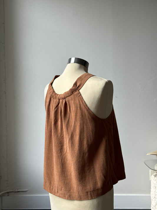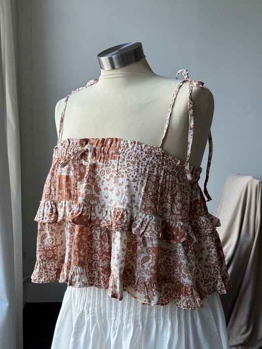 Terry Paisley Patch Bandana Ruffle Top In Red Canyon