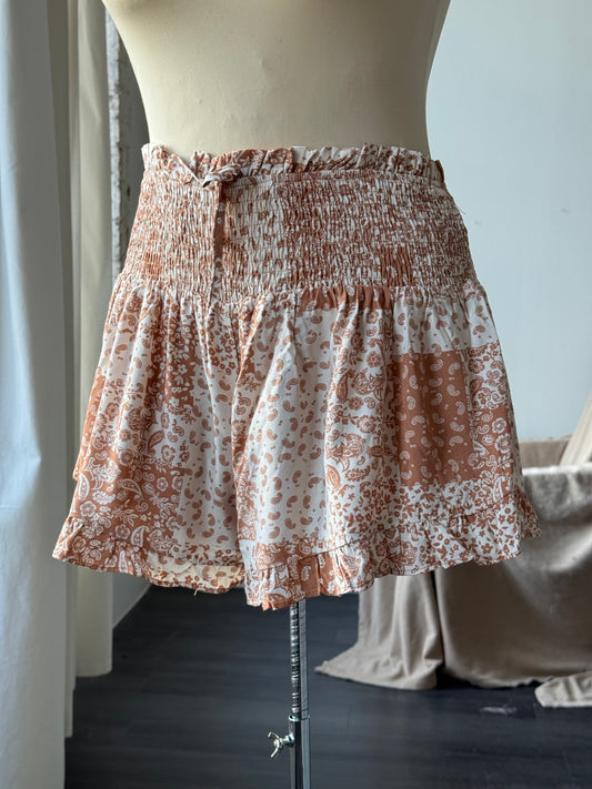 Terry Paisley Patch Bandana Shorts In Red Canyon