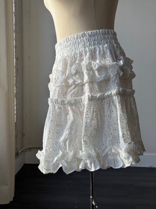Linda Cotton Eyelet Ruffled Skirt In Ivory