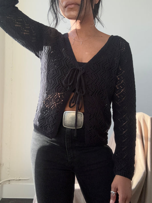 Brooks Crochet Tie Front Top In Black