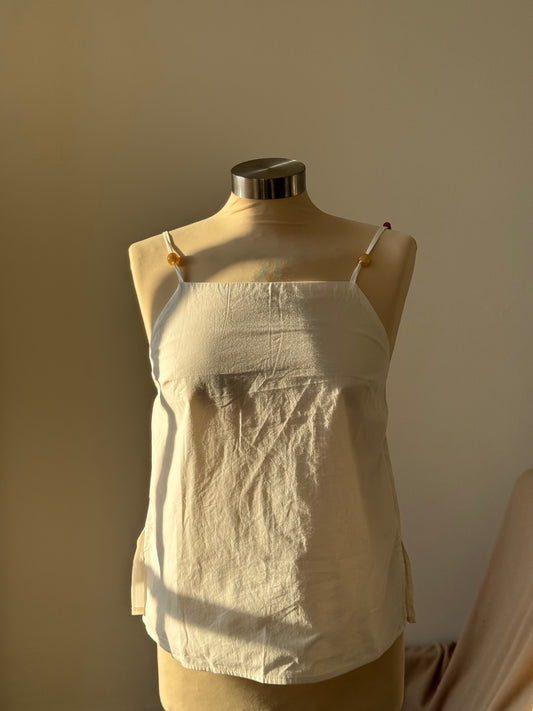 Denise Cotton Beaded Cami Top In Ivory