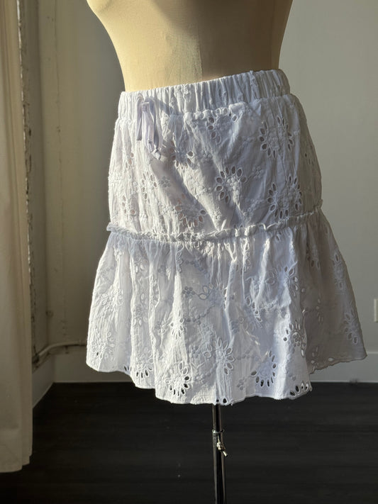 Fluorine Cotton Eyelet Tiered Skirt In White