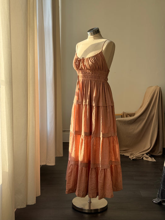 Marcelus Cotton Open Back Tiered Maxi Dress In Mocha