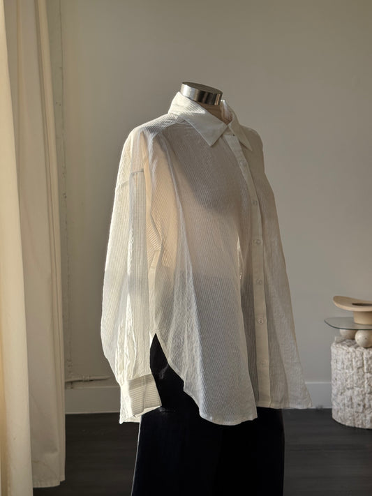 Riley Cotton Sheer Button Down In White