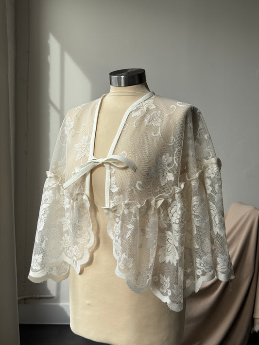 Jernigan Handcrafted Vintage Lace Cape In Butter