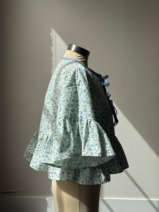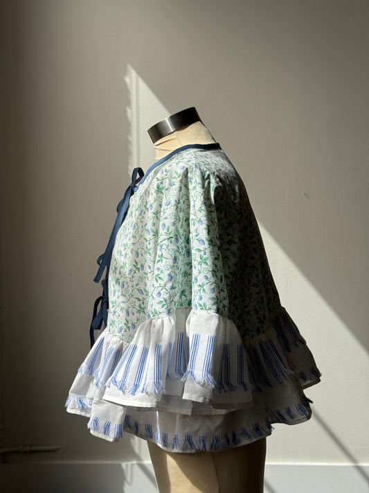 Joycie Vintage Cotton Handcrafted Ruffle Top In Floral