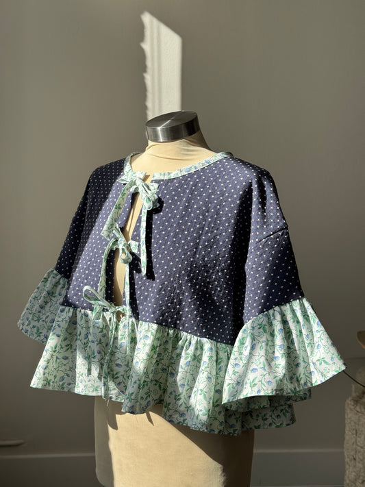 Joycie Vintage Cotton Handcrafted Ruffle Top In Navy