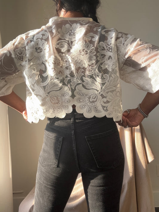 Judy Handcrafted Vintage Lace Button Down Top In Cream