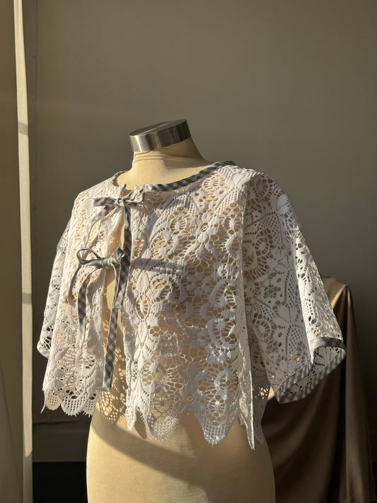 Sherie Handcrafted Vintage Lace Wave Tie Top In White