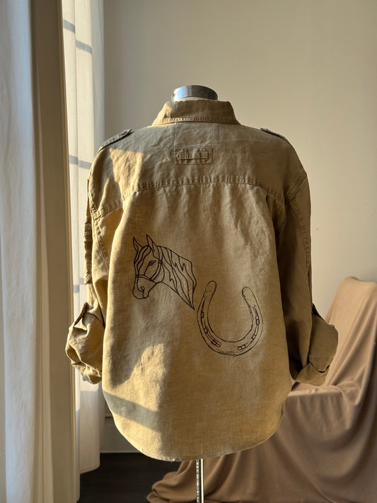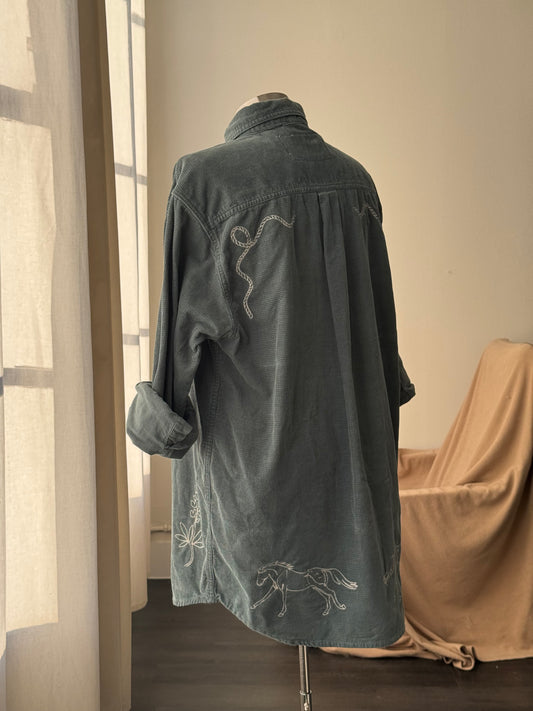 Jaxson Handcrafted Embroidered Rodeo Workwear Shacket In Forest Moss
