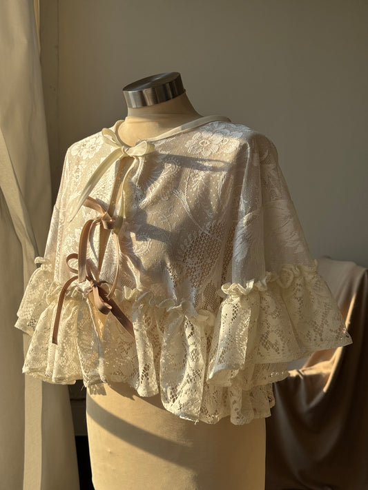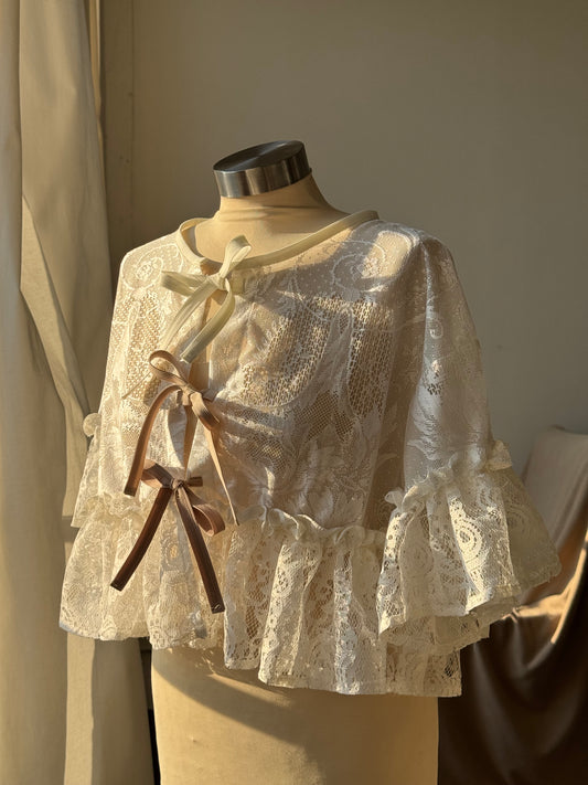 Eliza Two Tone Vintage Lace Handcrafted Ruffle Top In Ivory