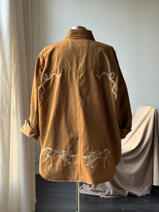 Jaxson Handcrafted Embroidered Rodeo Workwear Shacket In Coffee