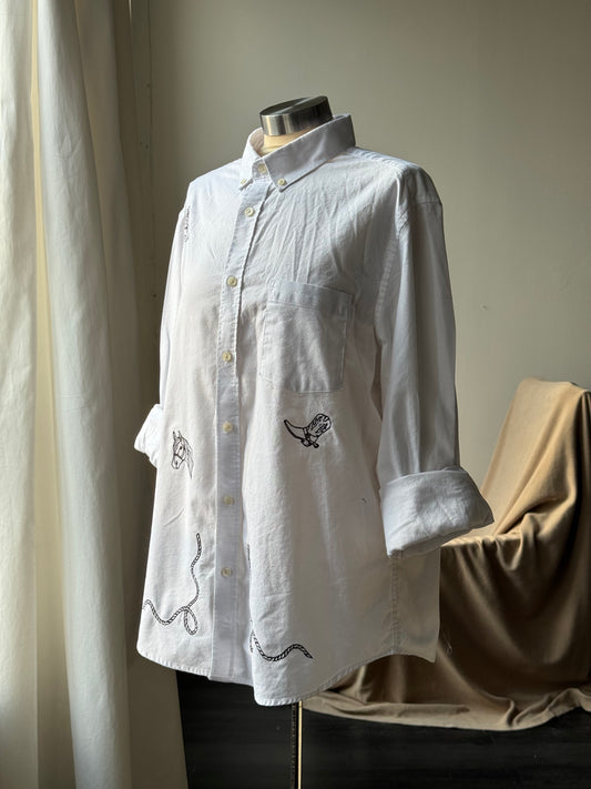 Lawrence Handcrafted Embroidered Cropped Button Down