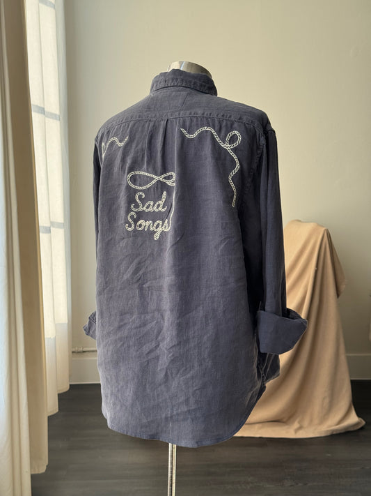 Lawrence Handcrafted Sad Songs Linen Button Down In Vintage Navy