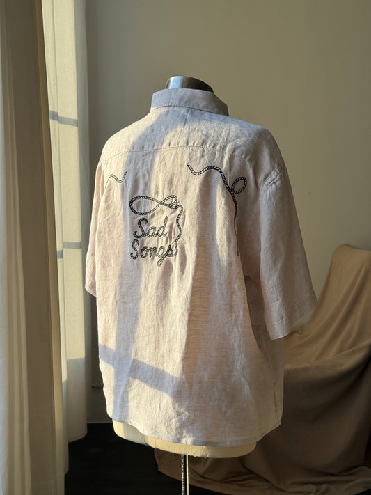 Judy Handcrafted Sad Songs Cropped Linen Button Down Short Sleeve In Natural