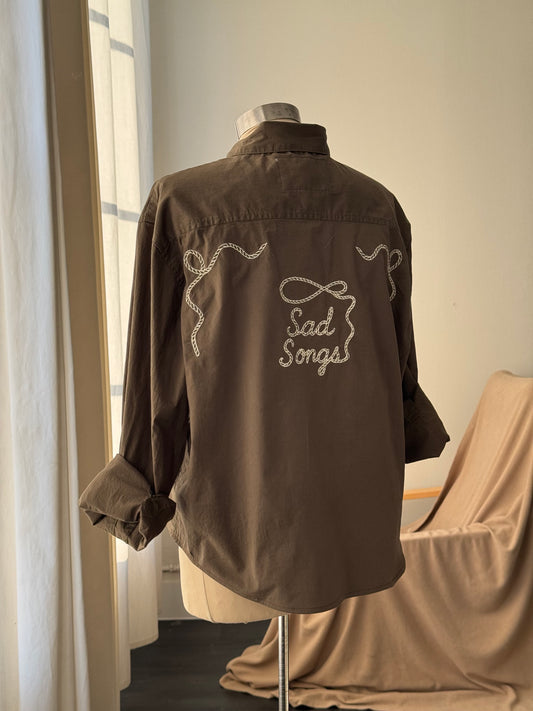The Lawrence Handcrafted Sad Songs Cropped Button Down Long Sleeve In Army Olive Brown