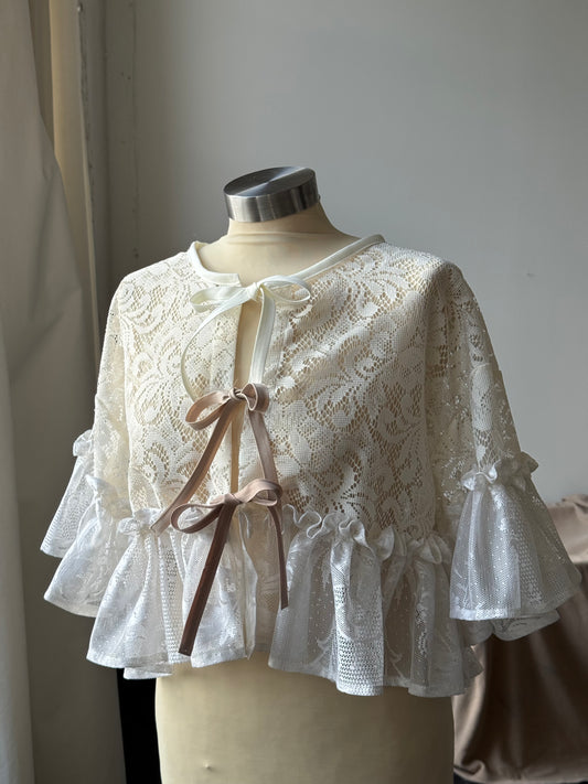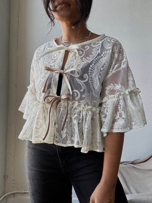 Eliza Vintage Lace Handcrafted Ruffle Top In Napoleon Cream
