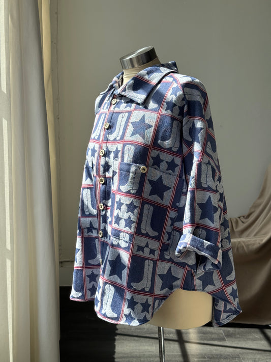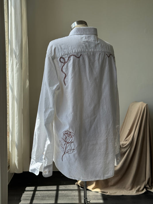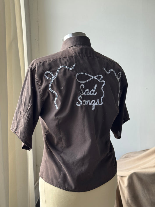 Judy Handcrafted Embroidered Sad Songs Cropped Button Down