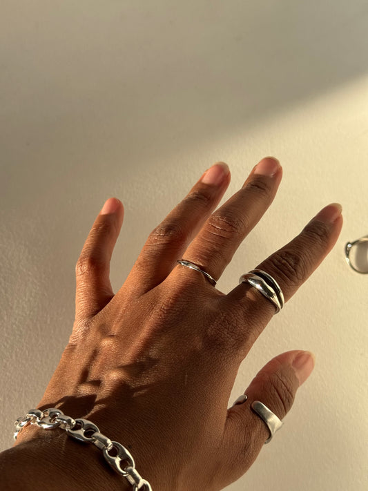Humble Hammered Artisan Single Band Ring In Matte Silver