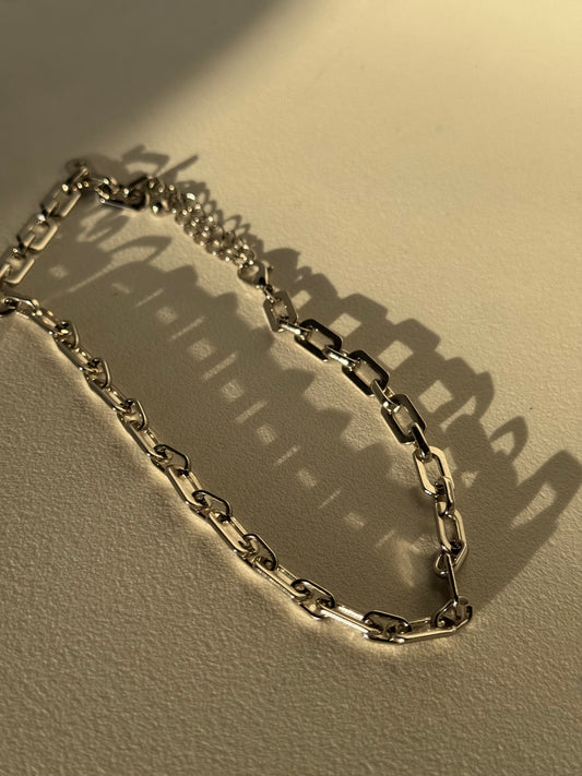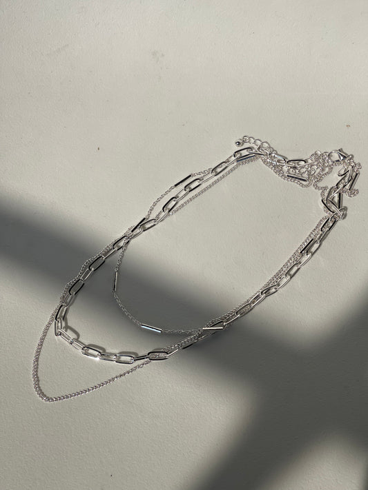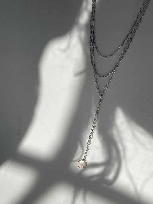 Phoebe Freshwater Drop Tri Link Necklace In Silver