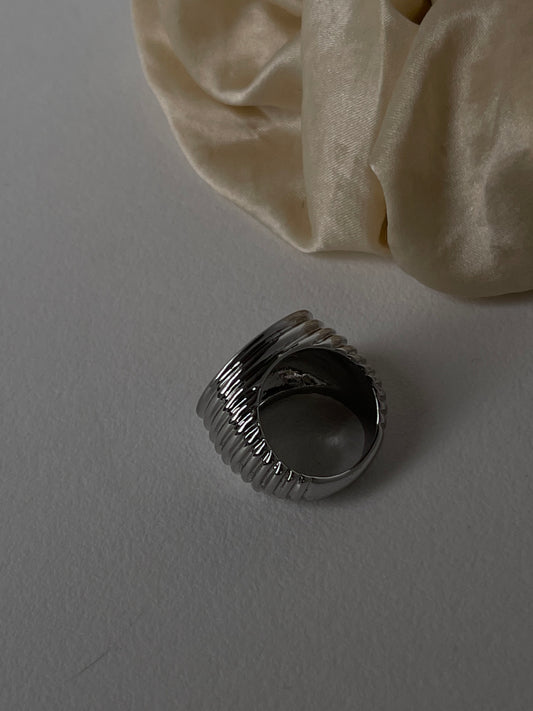 Danielle Mother Of Pearl & Charm Ring In Ivory Silver