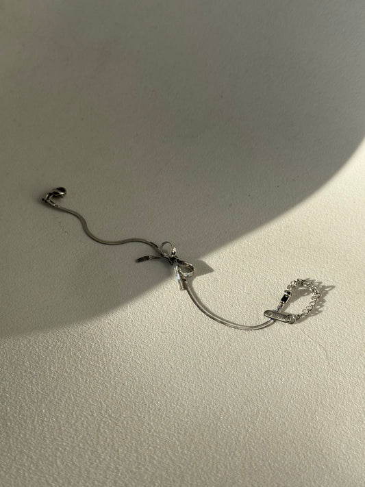 Kinsley Herringbone Chain Stainless Steel Bow Bracelet in Antique Silver