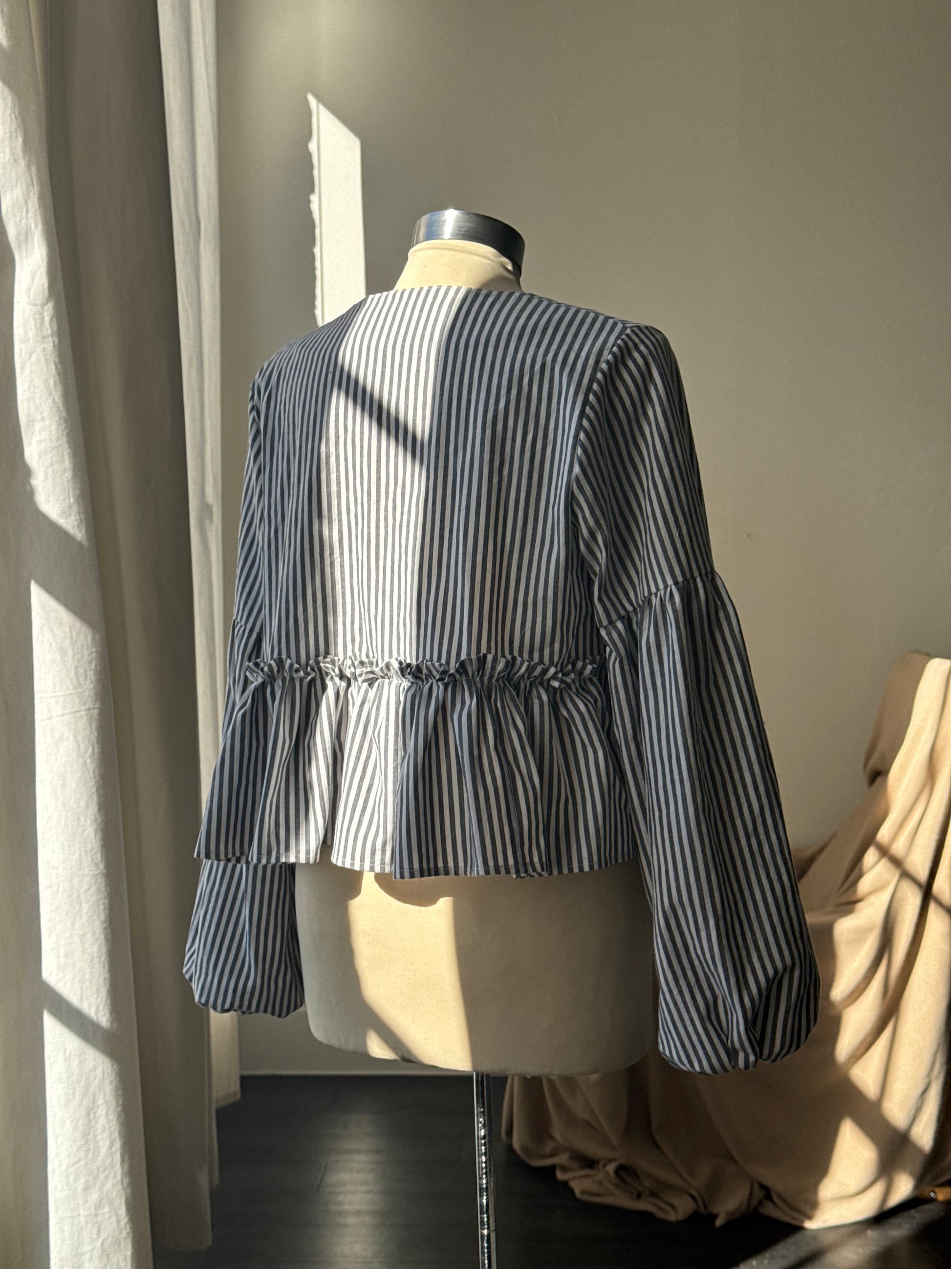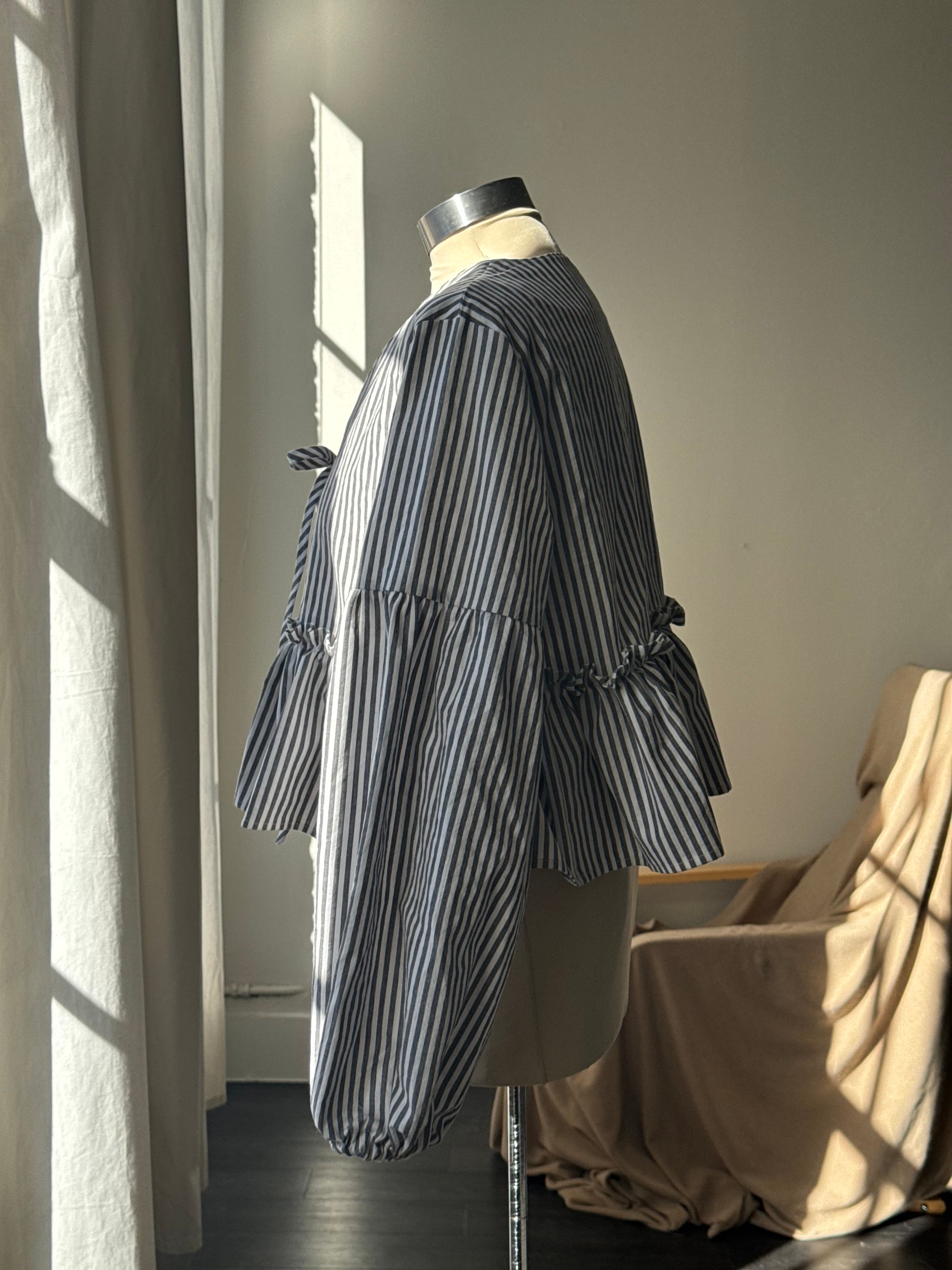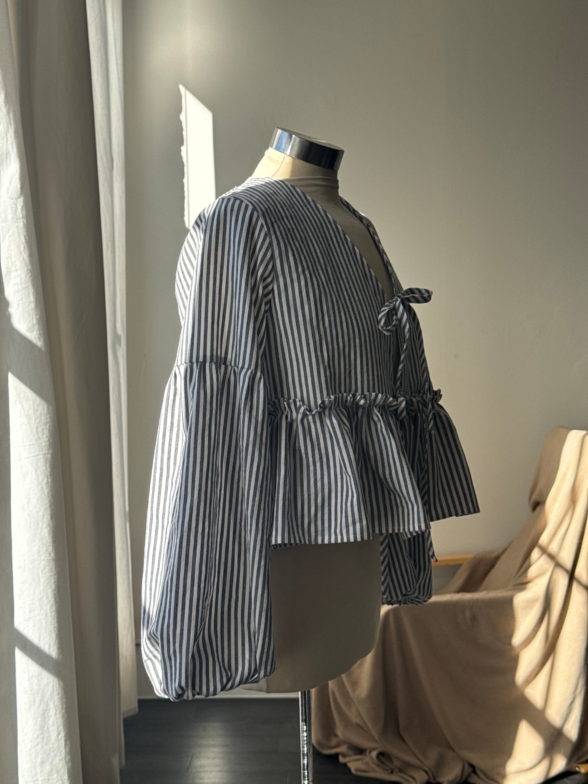 This top is made from vintage cotton and linen fabric. Handcrafted design highlights natural texture and breathability, offering a soft, airy feel perfect for both warm and cool days. The cropped silhouette and adjustable tie-front detail creates a flattering fit, whether worn solo or layered over a dress or slip that adds texture and character to the classic silhouette. A versatile piece rooted in slow fashion, it celebrates both sustainability and style for modern wardrobes inspired by vintage classics.