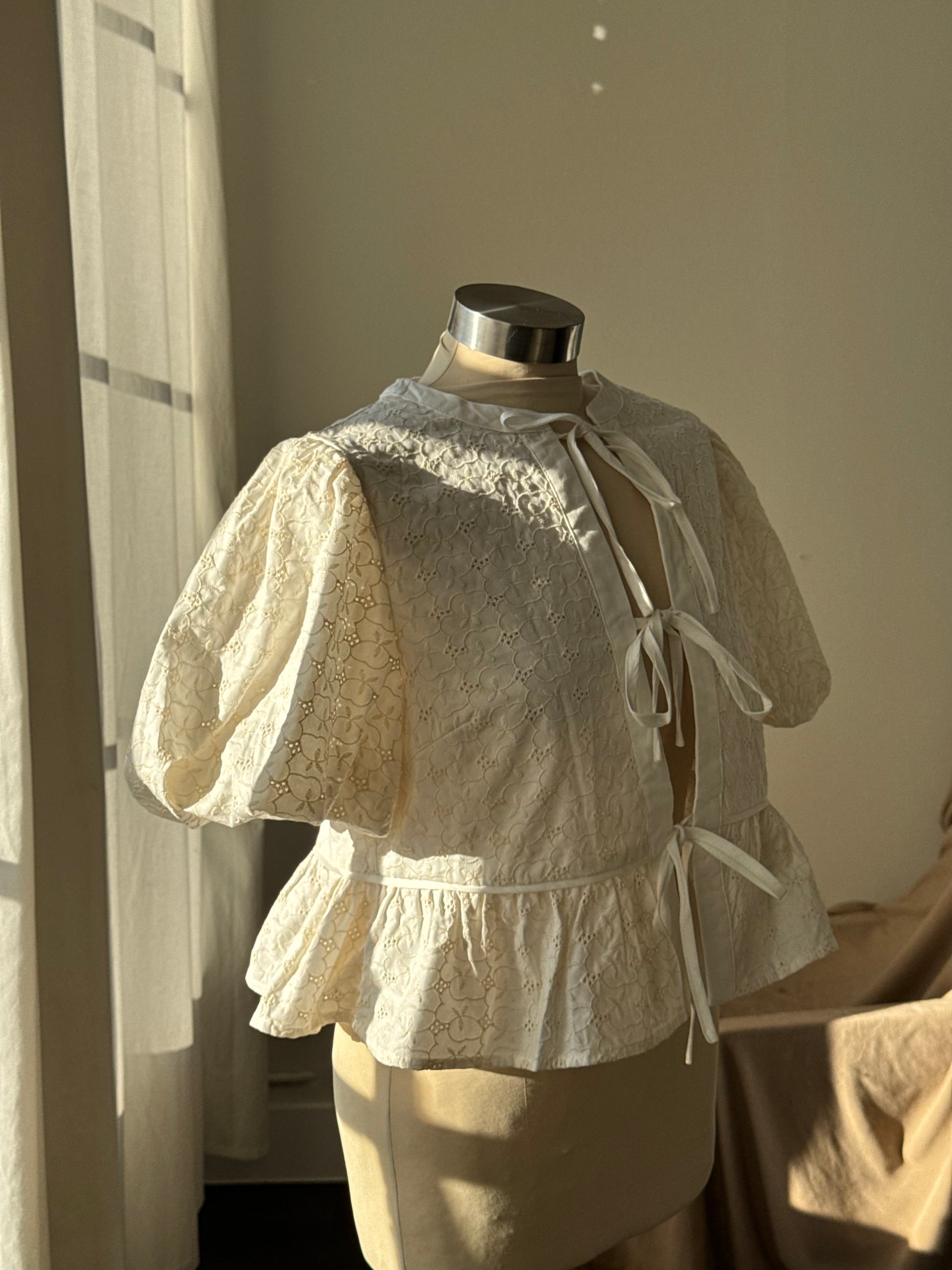 A romantic, easygoing piece. This cotton puff sleeve top features delicate embroidery that adds a touch of handcrafted charm, while the tie-front silhouette keeps the fit relaxed, flattering, and effortlessly feminine. The puff sleeves offer soft structure, creating that timeless, airy shape you love.