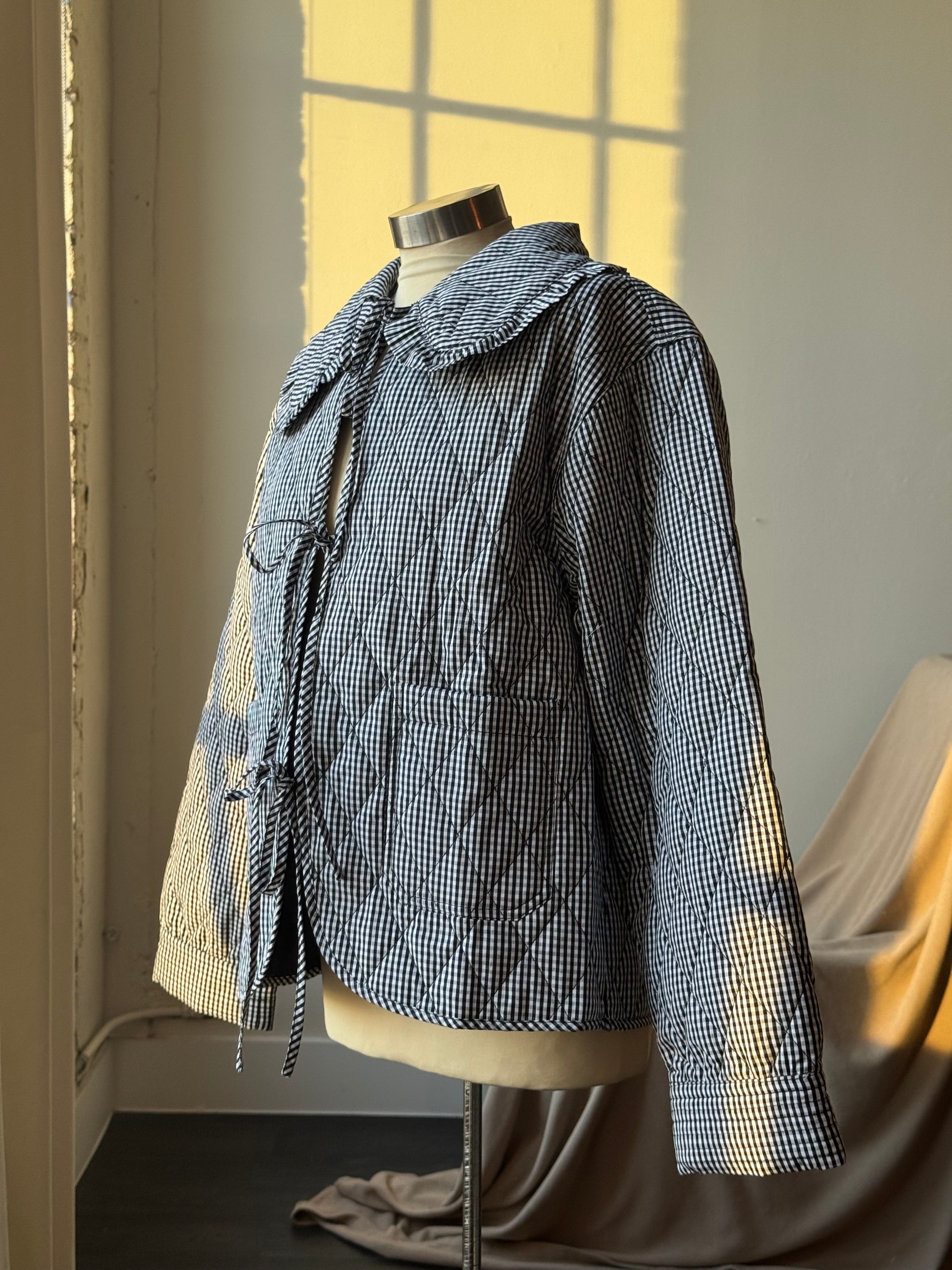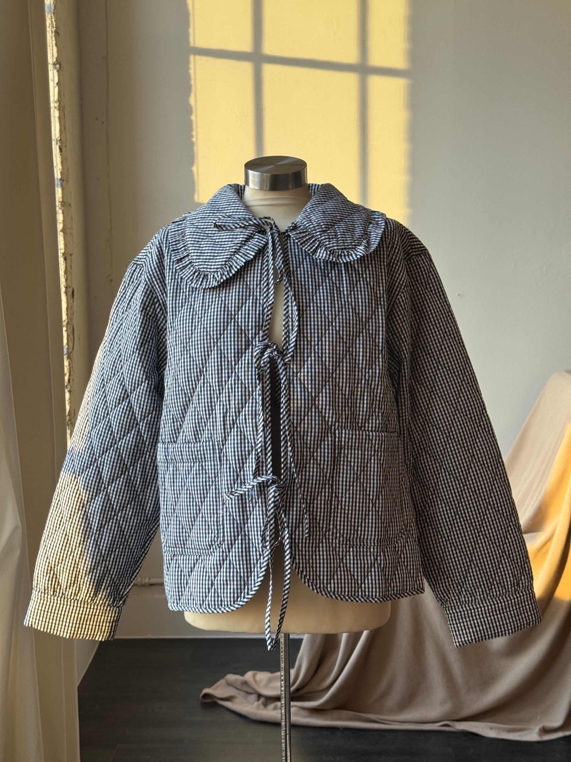 Jalisa Cotton Ultra Lightweight Gingham Tie Front Quilted Jacket