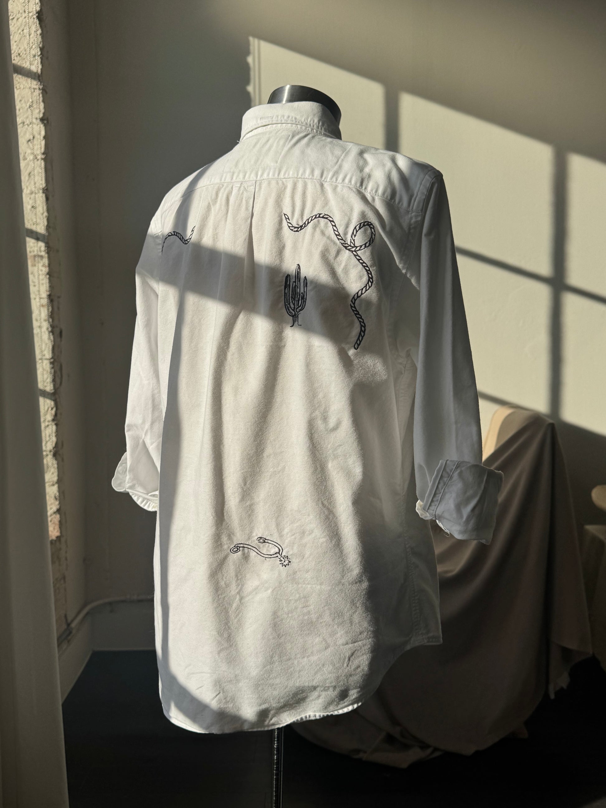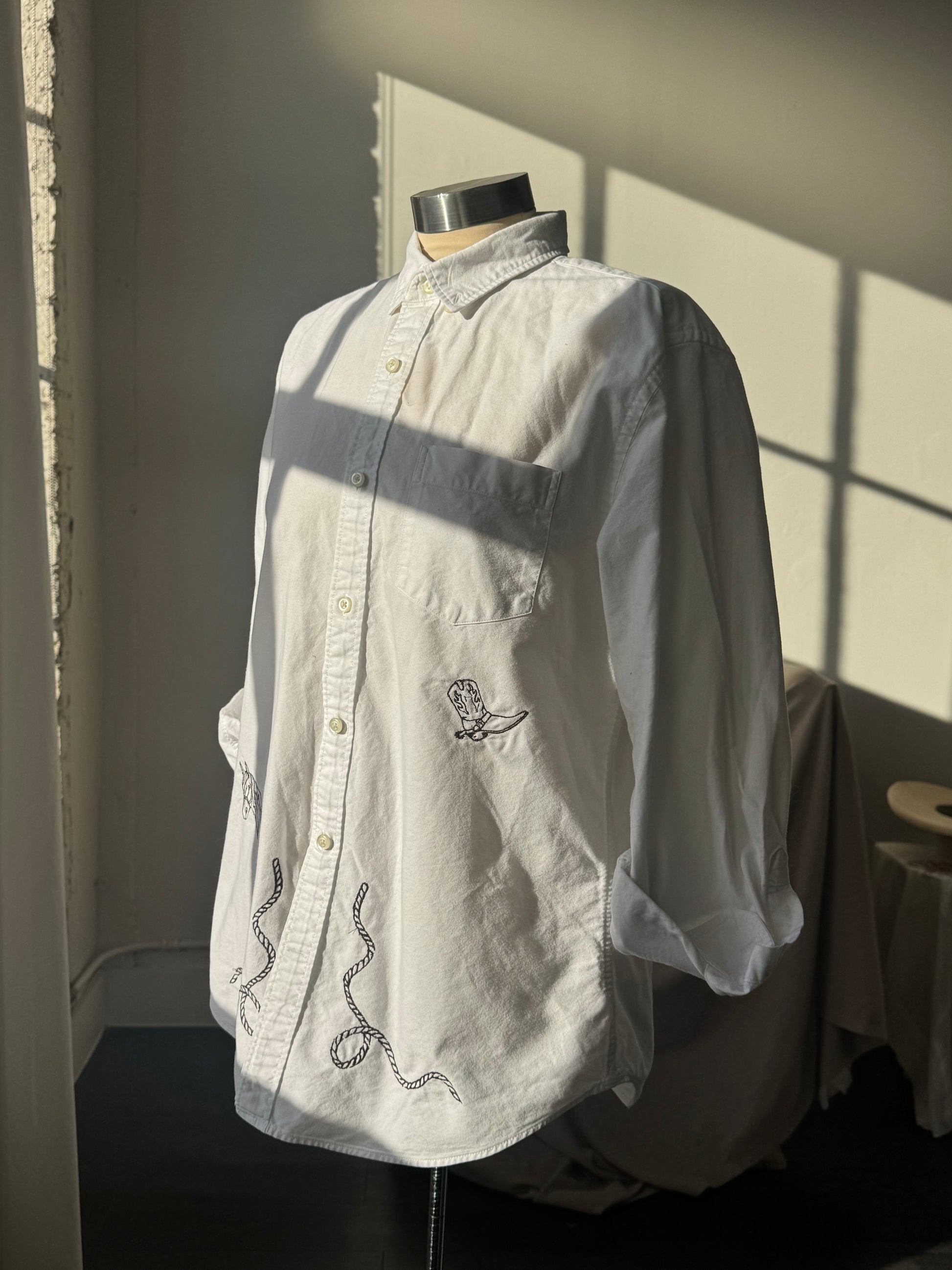 New life, one-of-a-kind shirt, original artwork through embroidered designs.