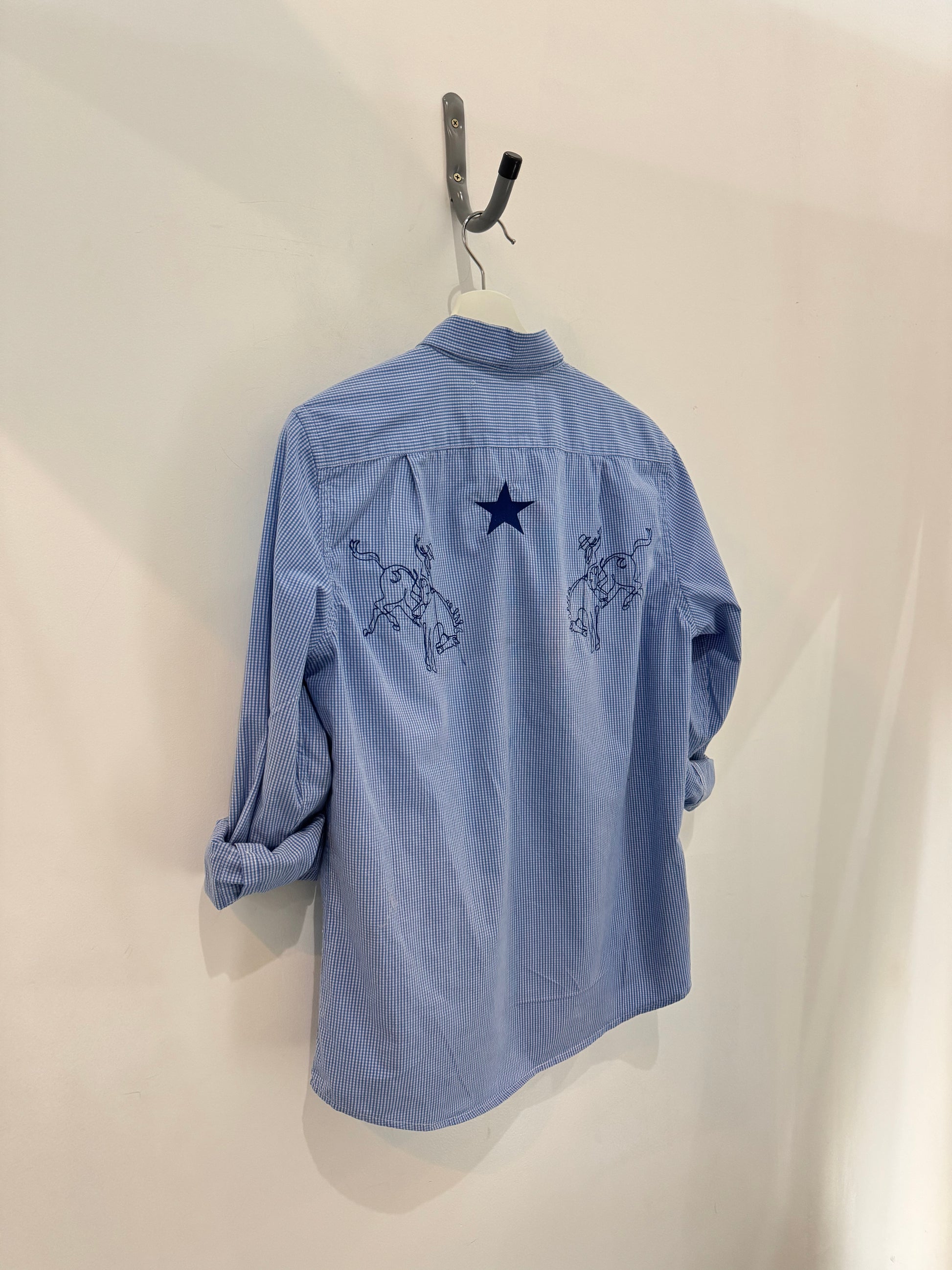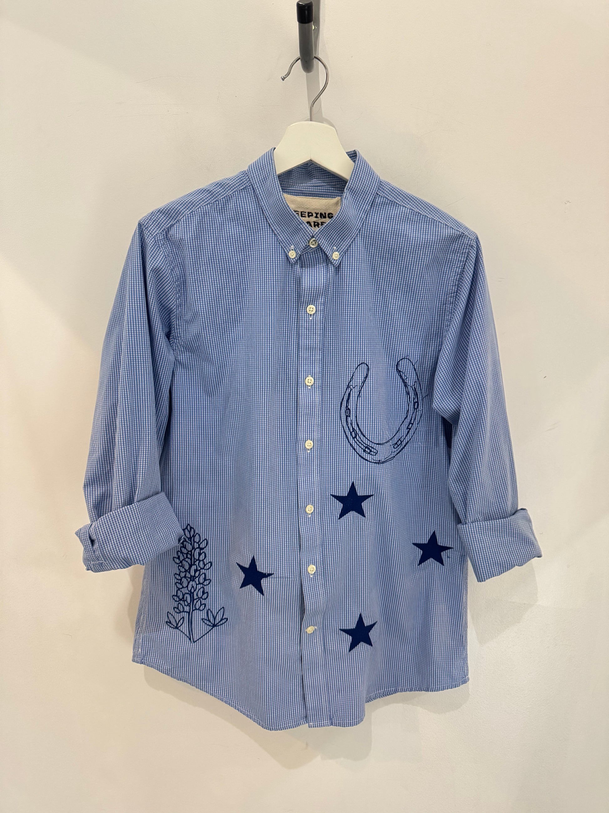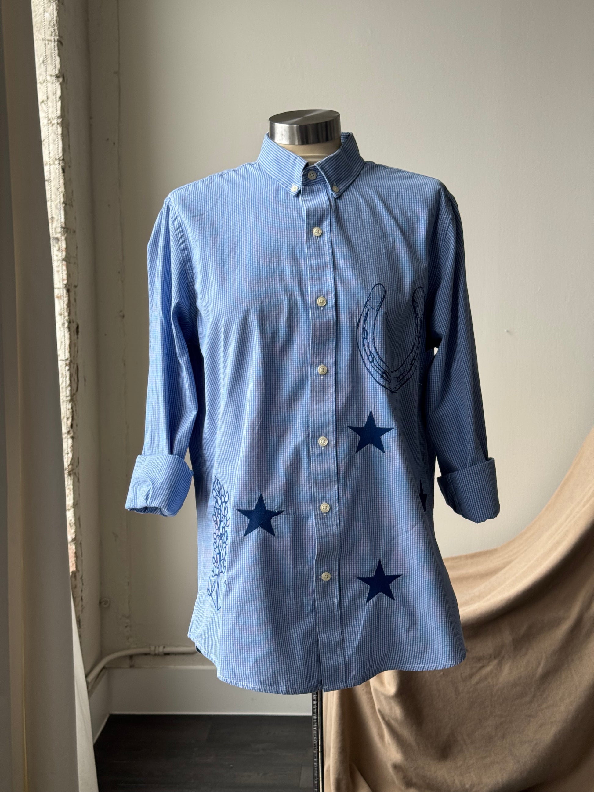 New life, one-of-a-kind shirt, original artwork through embroidery.