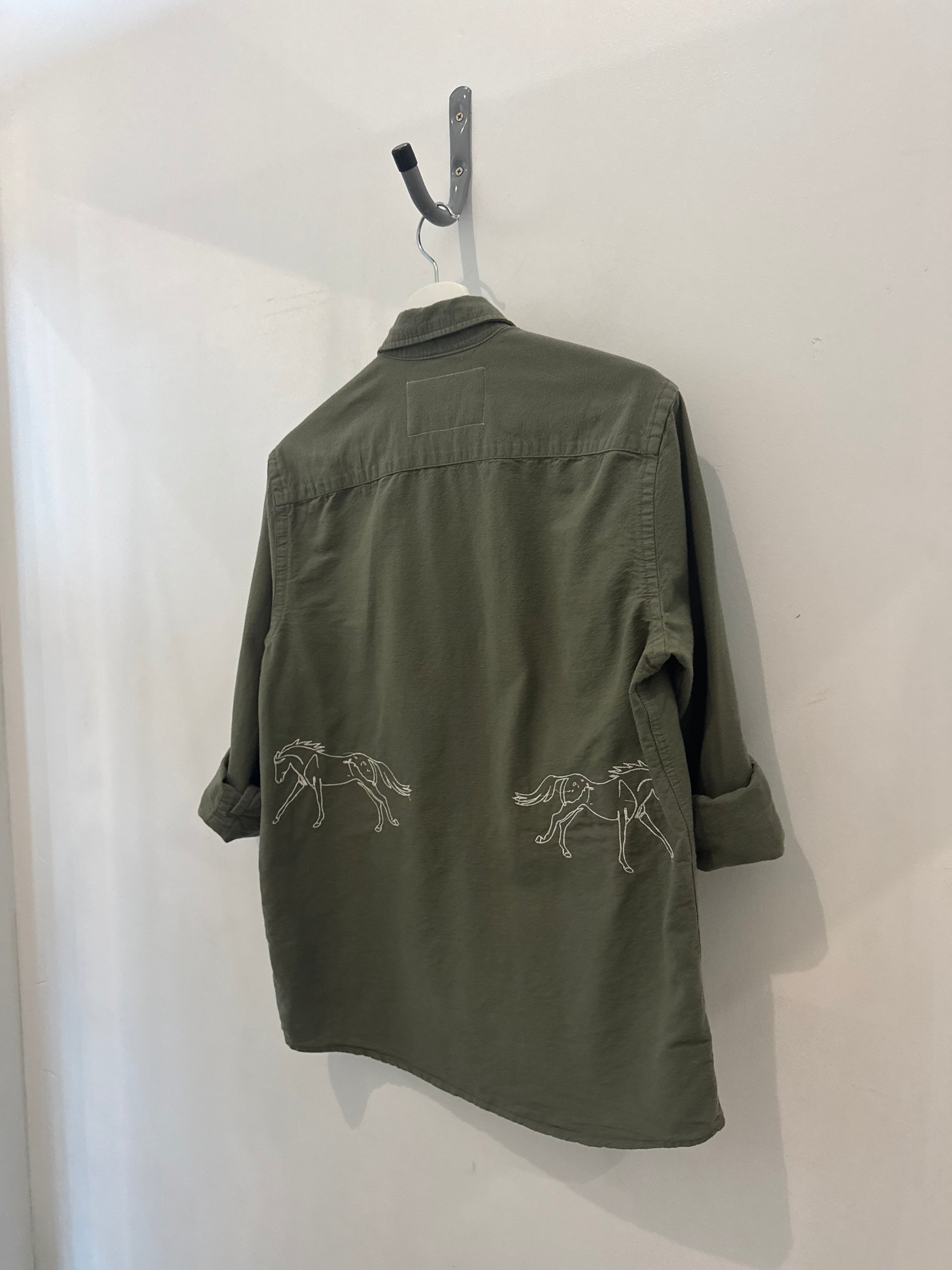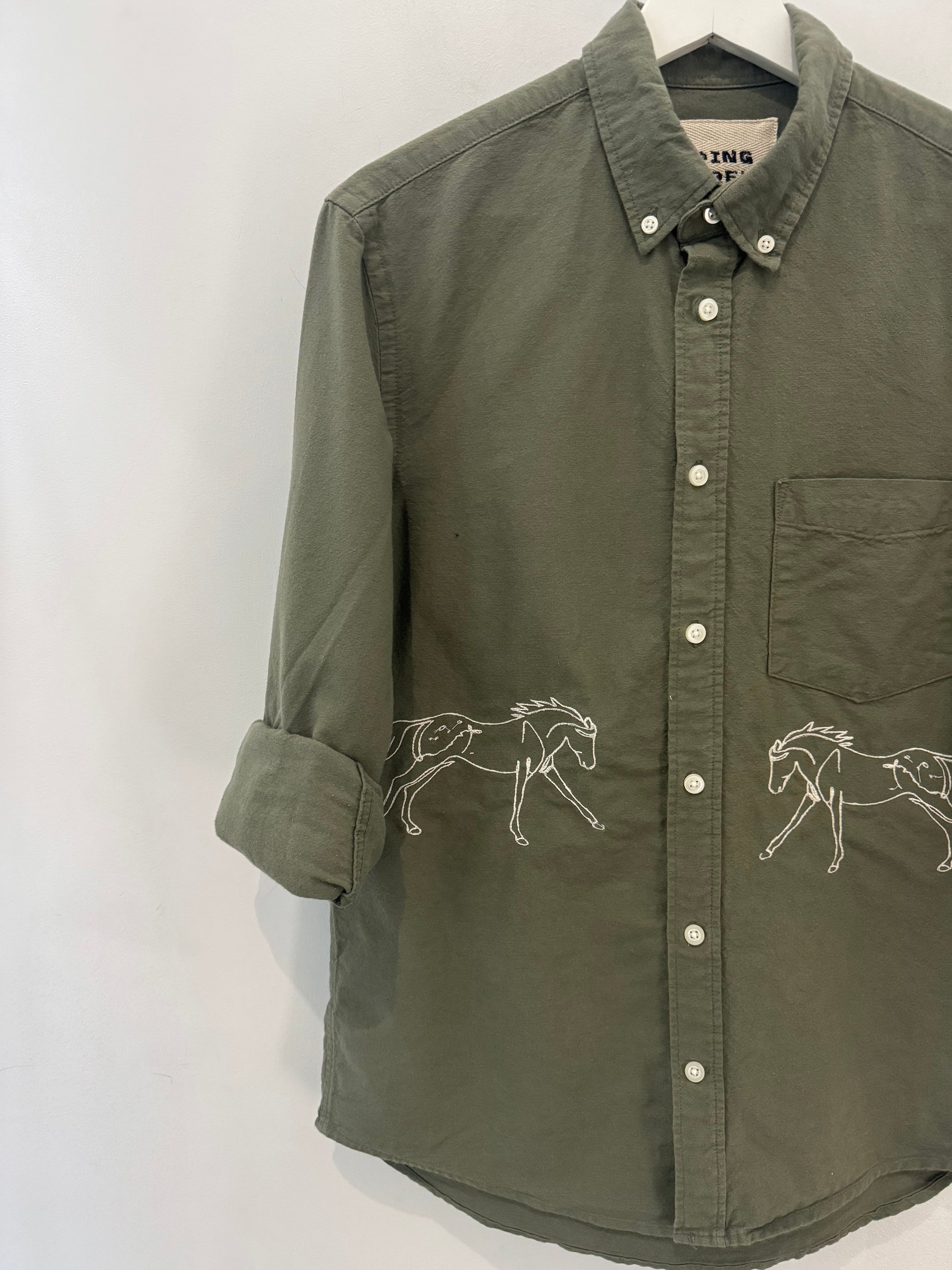 New life, one-of-a-kind shirt, original artwork through embroidery.