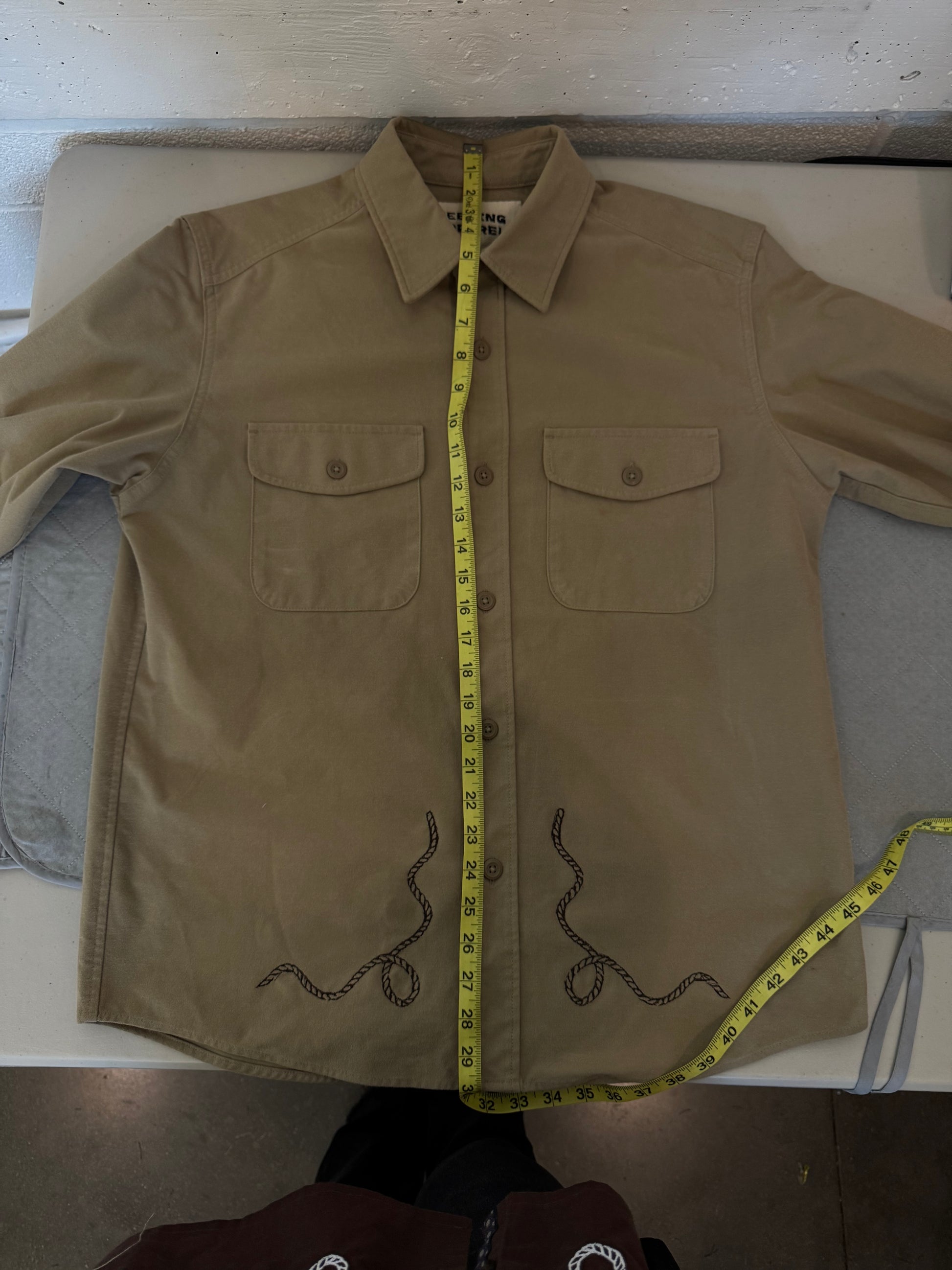 New life, one-of-a-kind shacket, original artwork through embroidery.