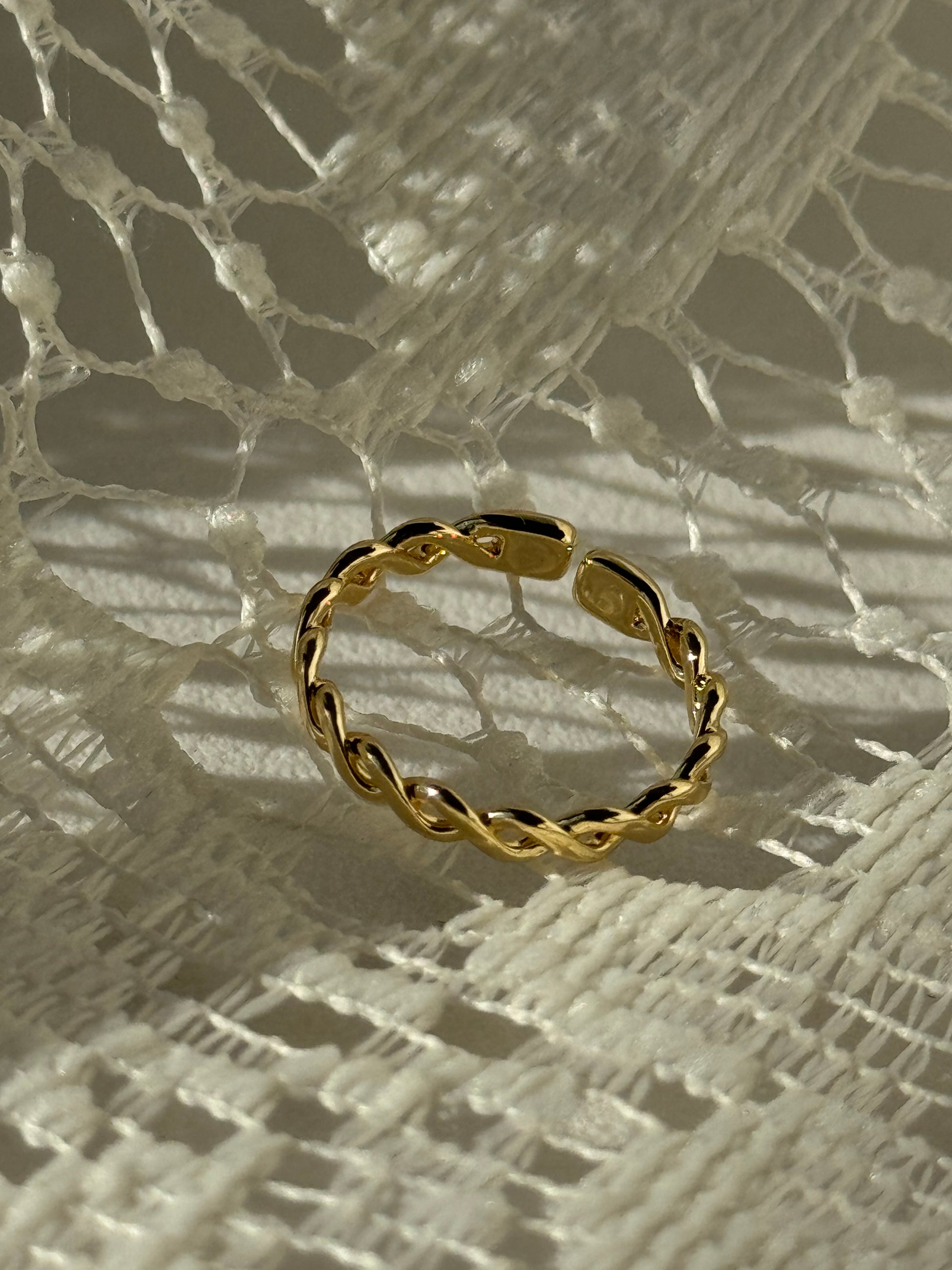 A timeless piece with a modern twist. This adjustable ring features a flat, braided band design that captures the elegance of simplicity while adding subtle texture. Its clean silhouette makes it perfect for everyday wear, stacking with other rings, or styling solo as a statement of understated sophistication.