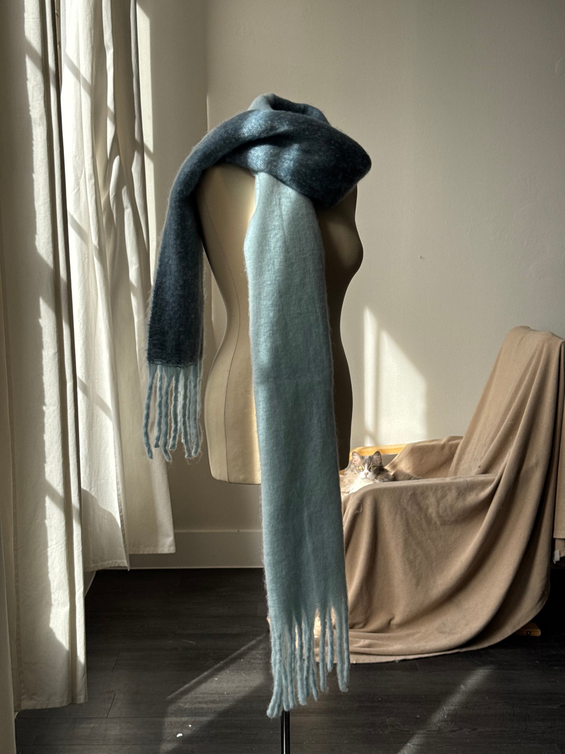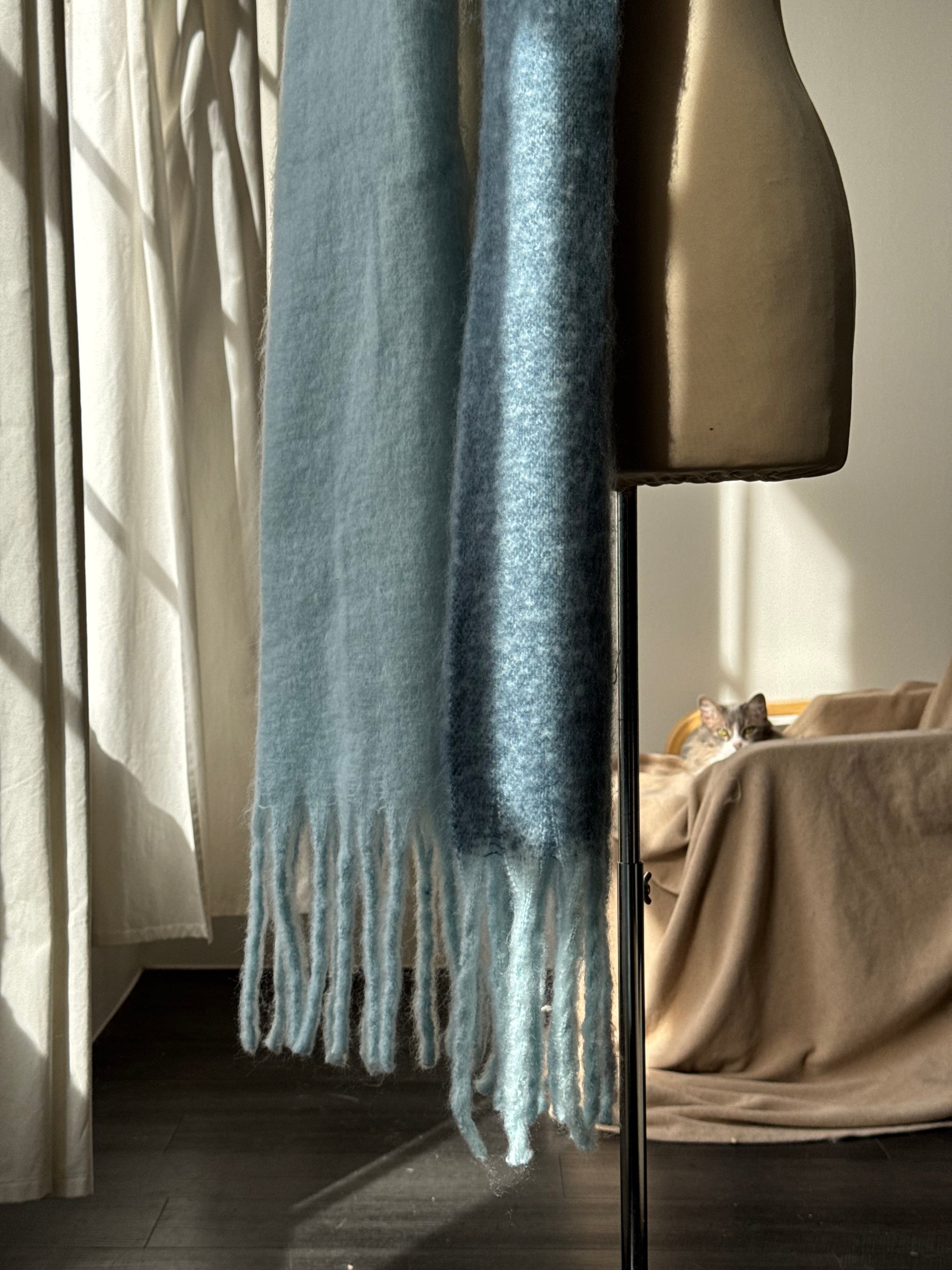 Kylie Ultra Soft Two Tone Fringe Scarf In Ice Blue