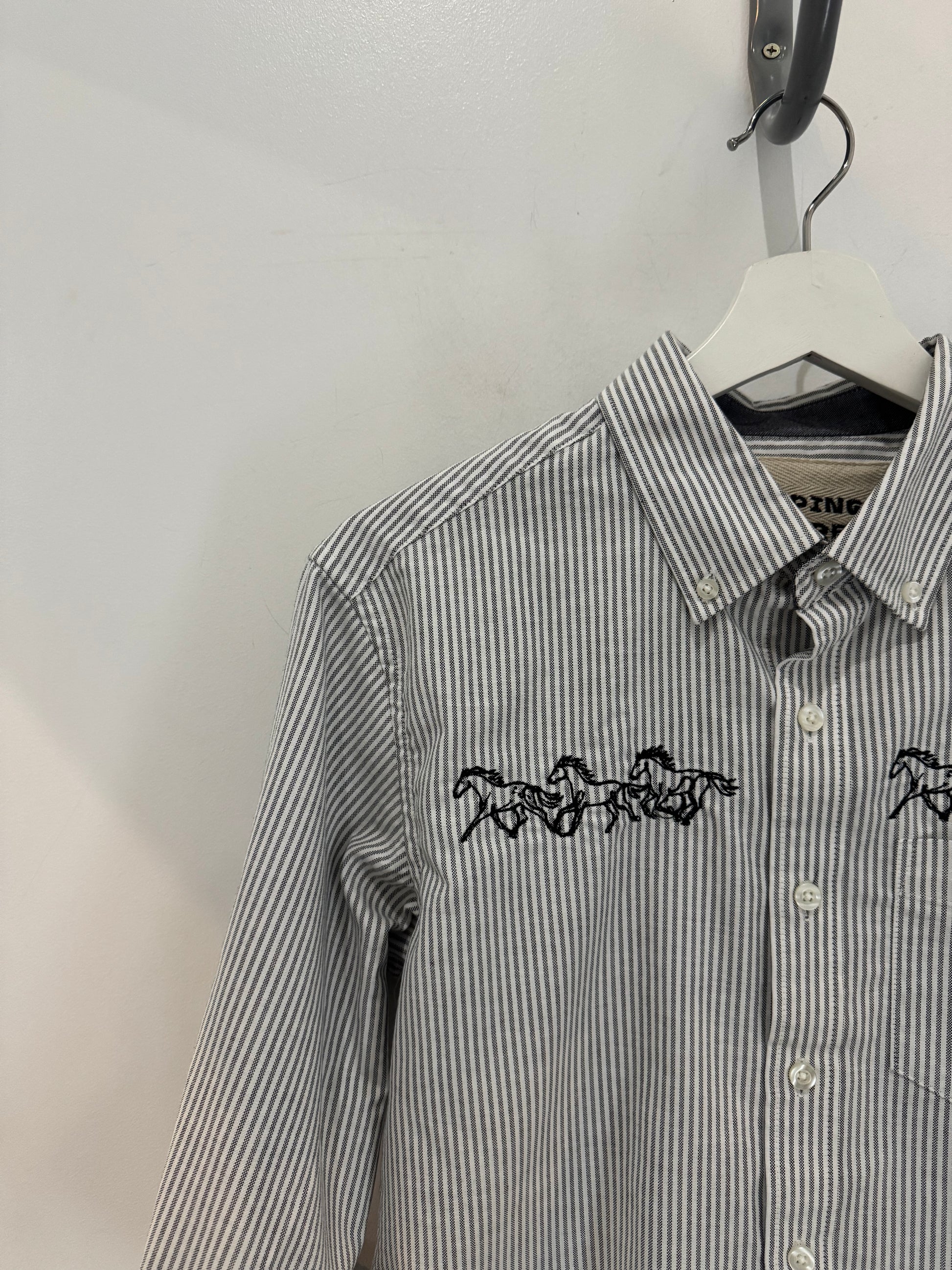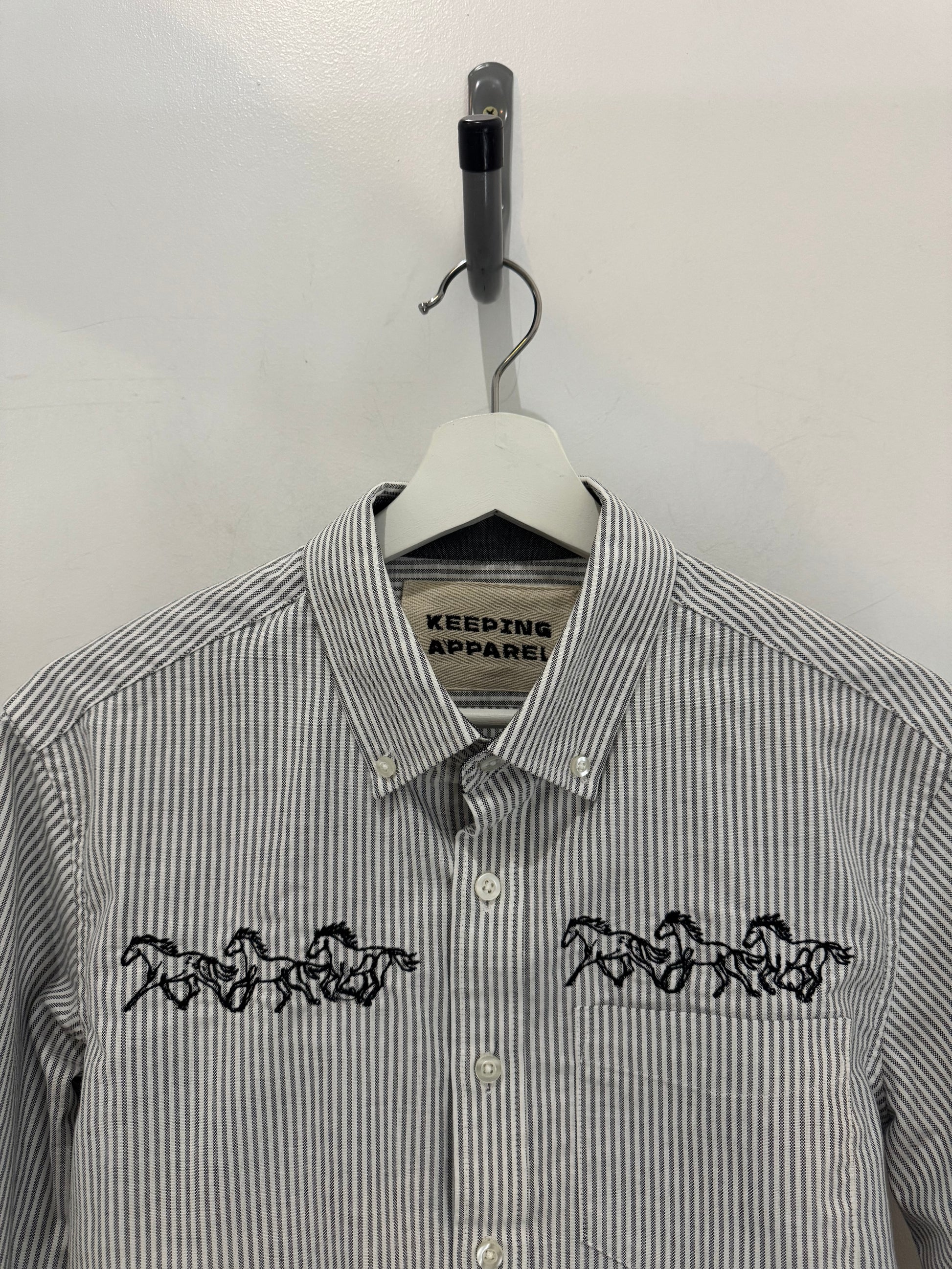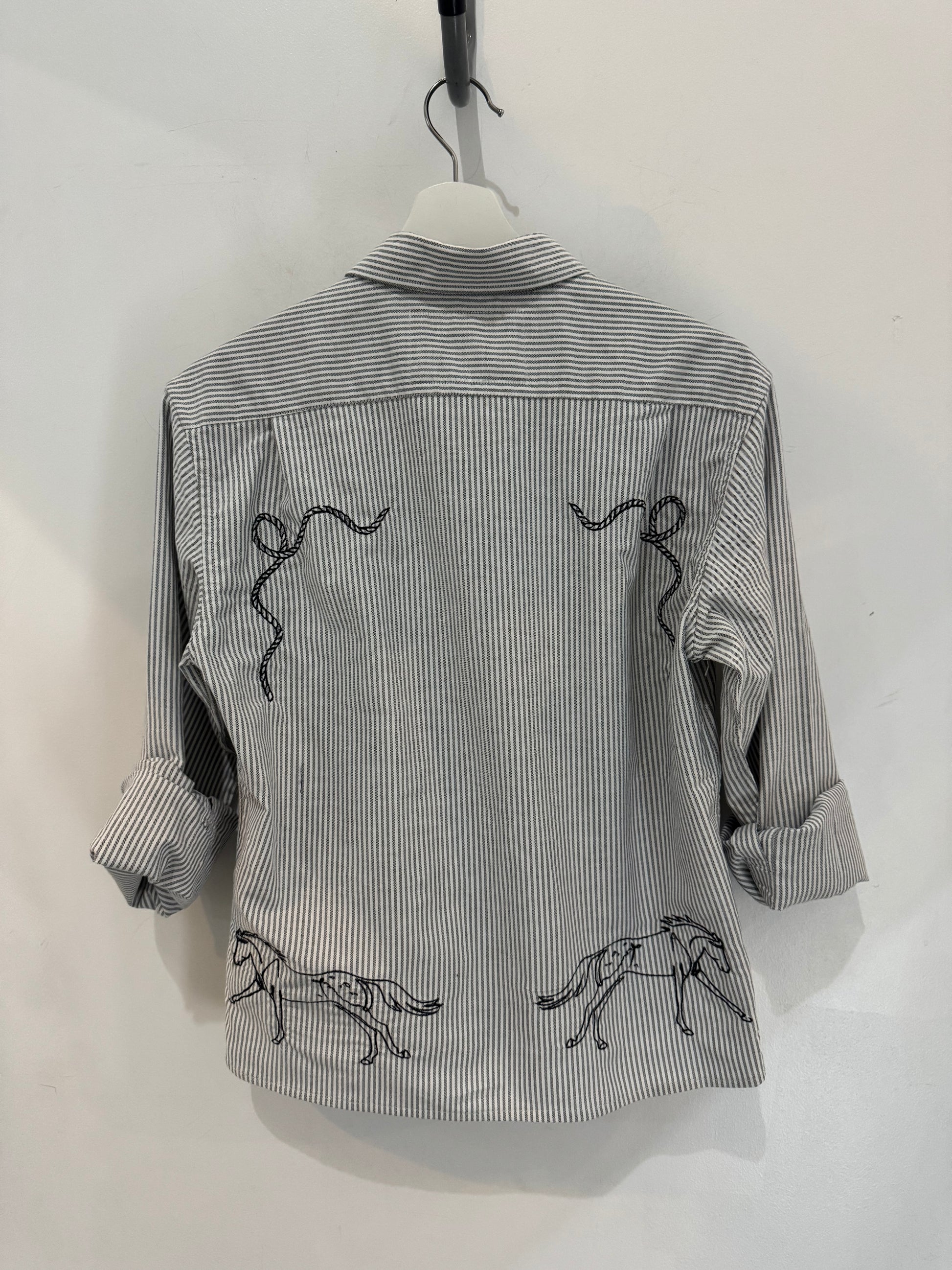 Lawrence Handcrafted Cropped Cotton long sleeve Button Down In Running Horses