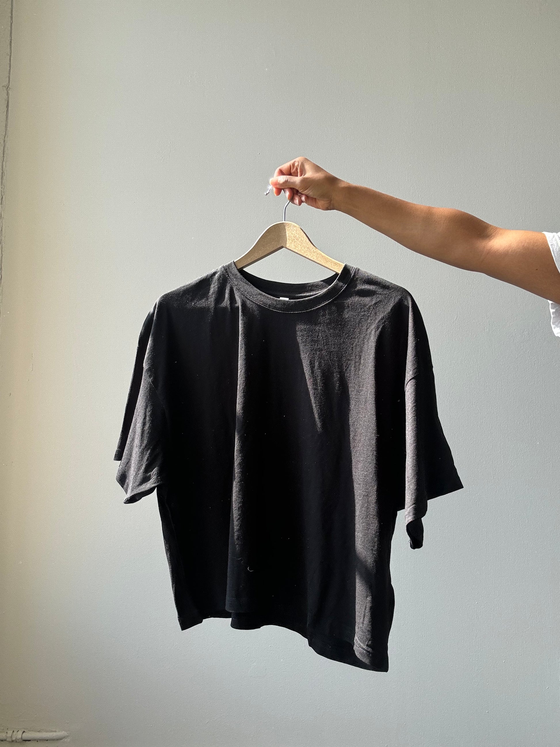 Ultra soft Cotton Short Sleeve Boyfriend Style Crop Top Crew Neck T-Shirt. Crafted from 100% cotton, this comfortable top is a staple in the wardrobe. The oversize fit adds a relaxed vibe, while the med crop length adds a touch of style. With its crew neck design and short sleeves, it's versatile for any casual occasion.