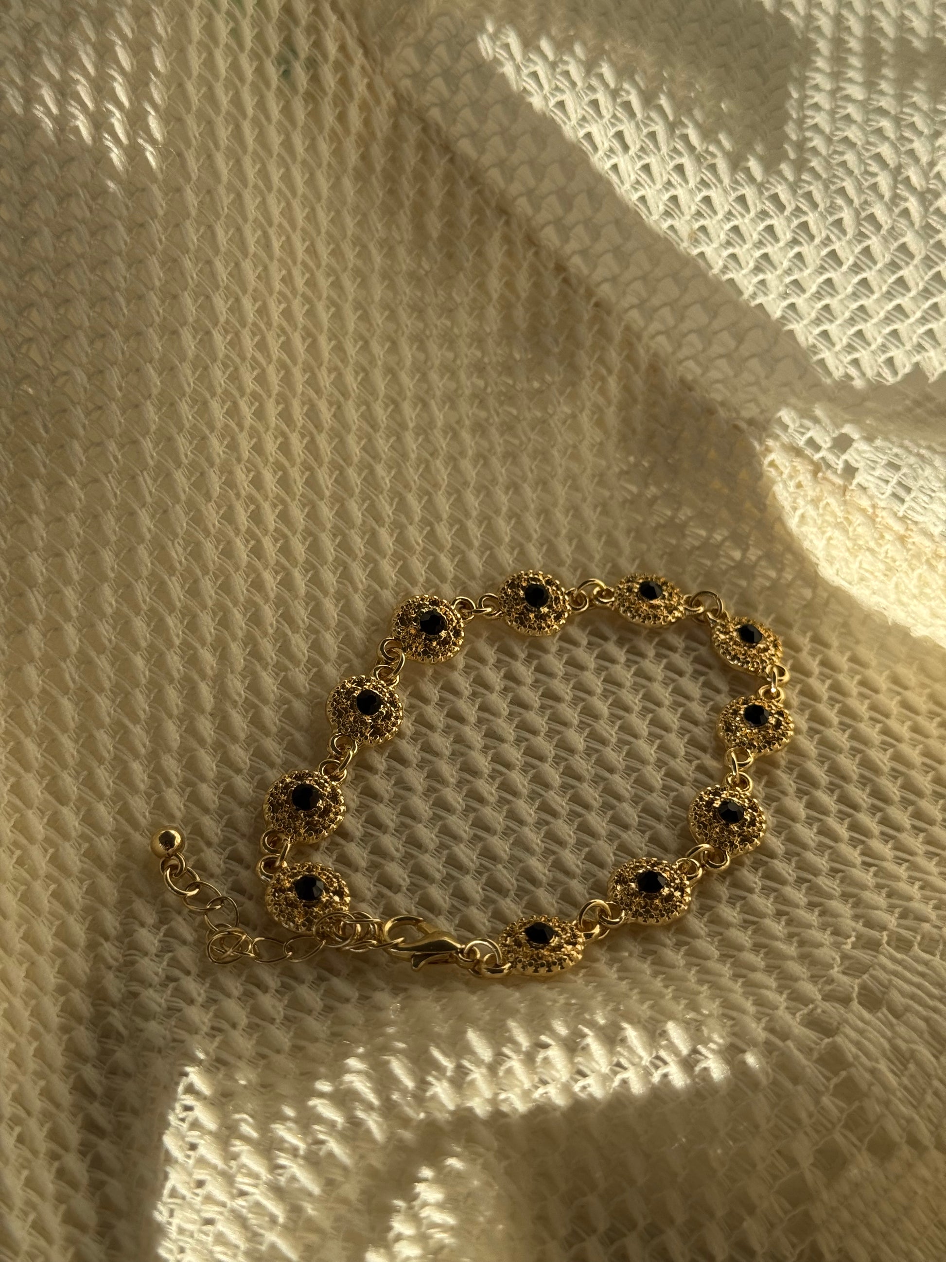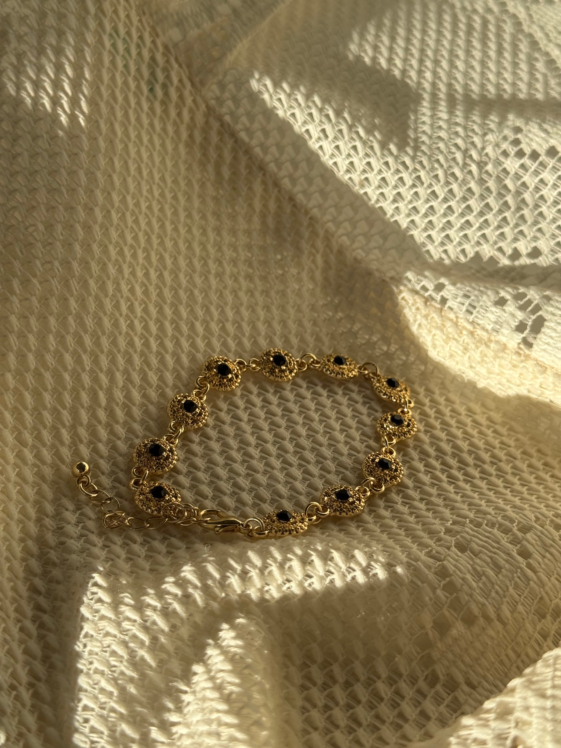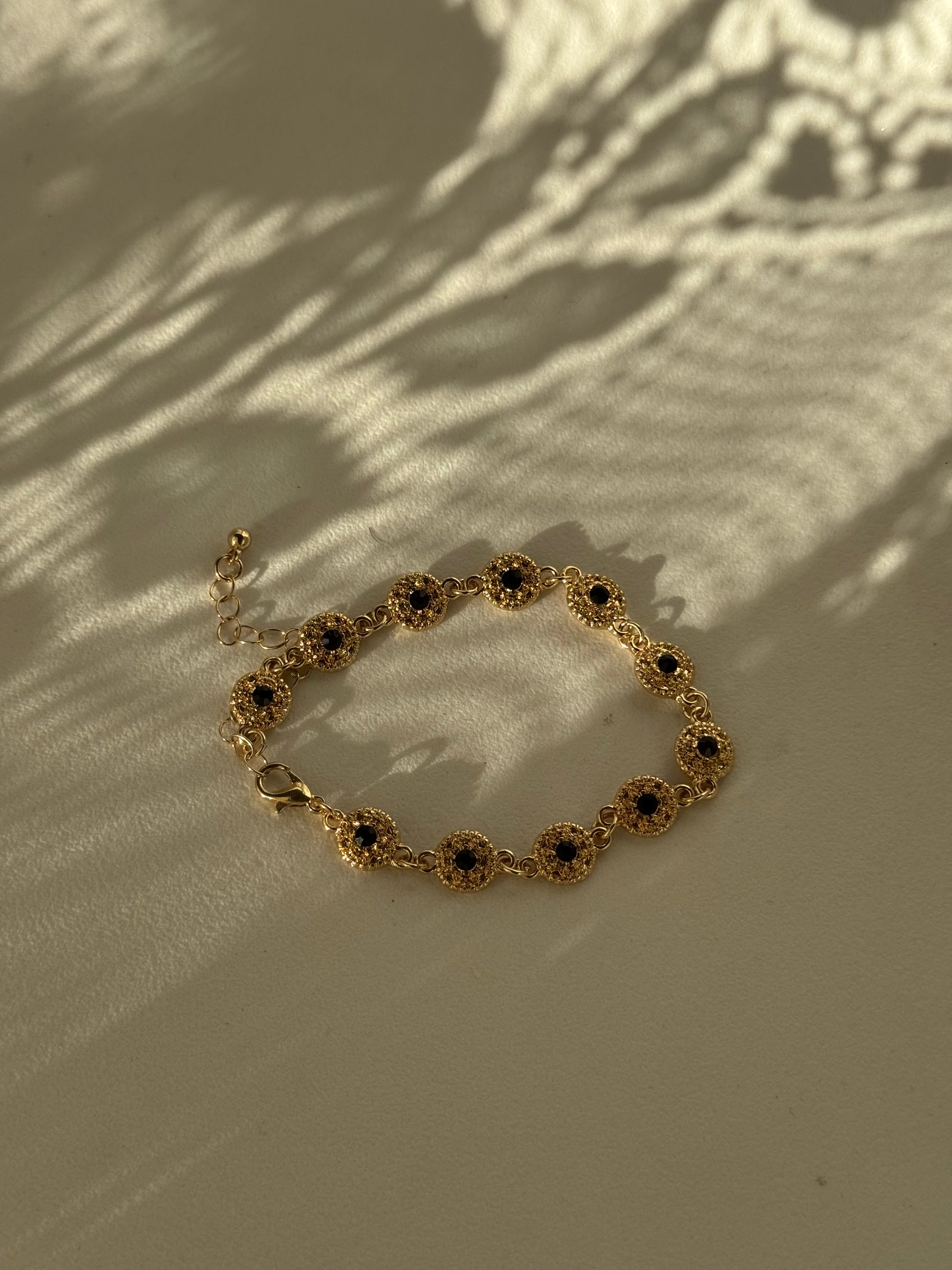 Phoebe Classic Ebony Stone Charm Bracelet In Gold