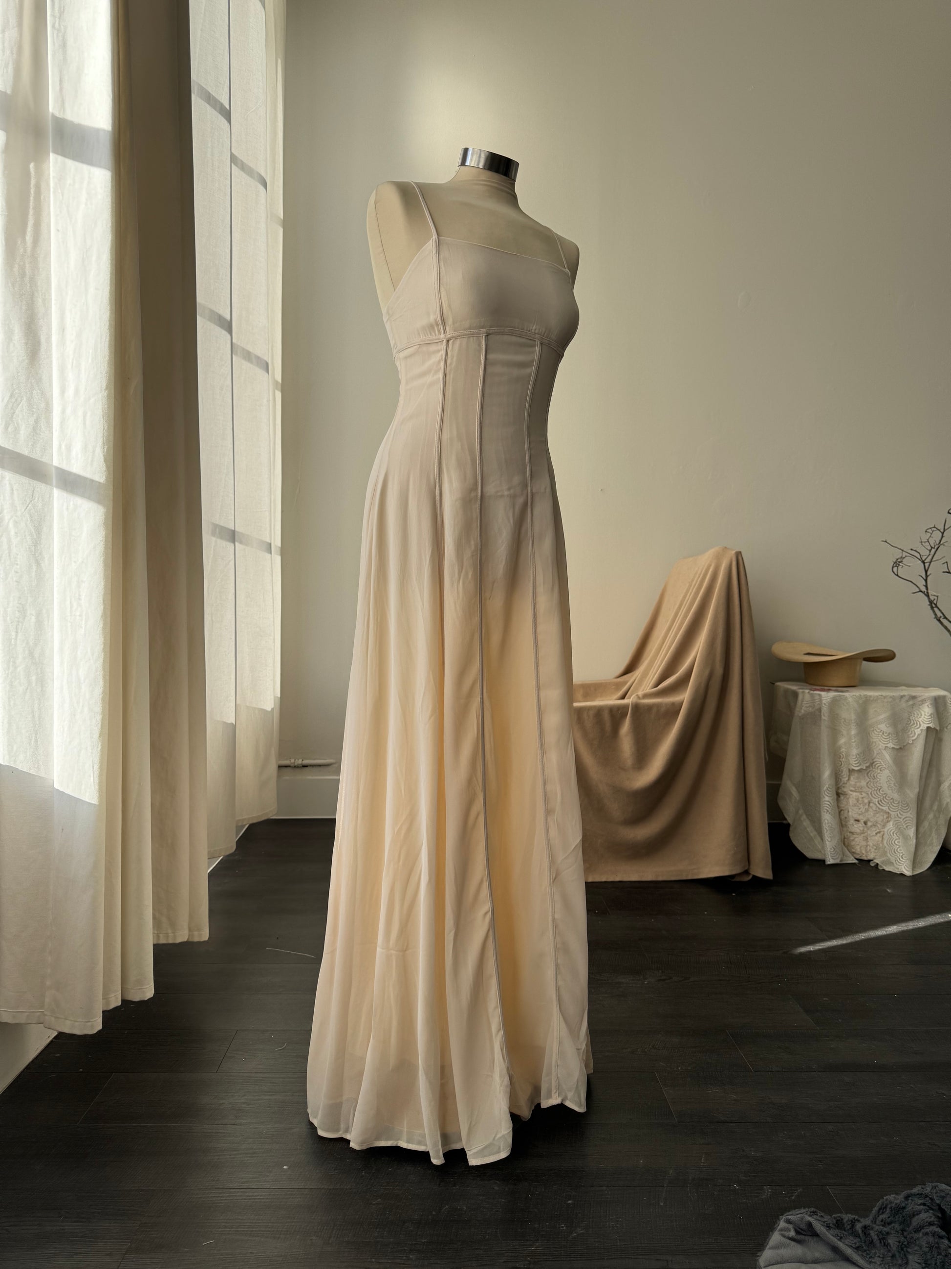 An effortlessly elegant silhouette designed for moments that feel special. This romantic maxi dress features a flowing, full-length design that drapes beautifully while offering comfort and confidence with a fully lined interior. Soft, feminine details and a graceful shape create a look that’s both timeless and easy to wear.