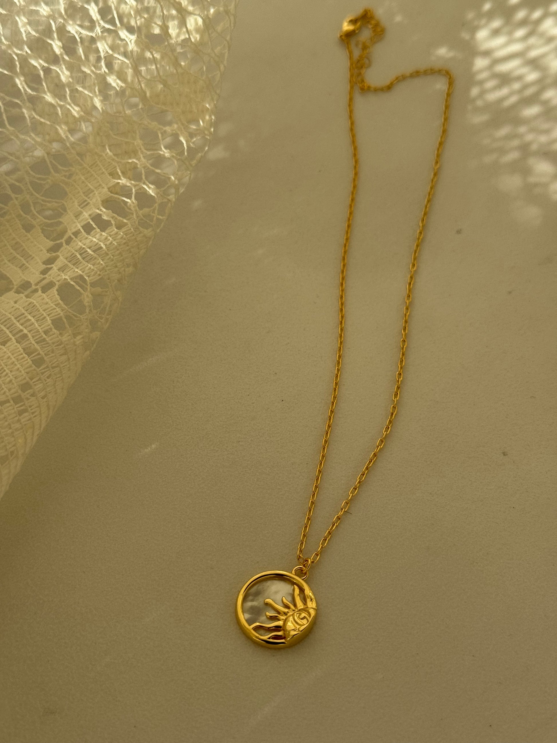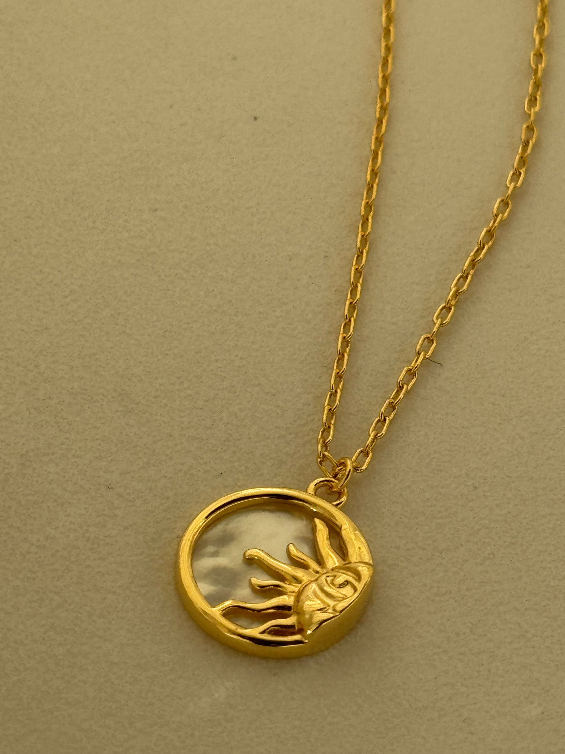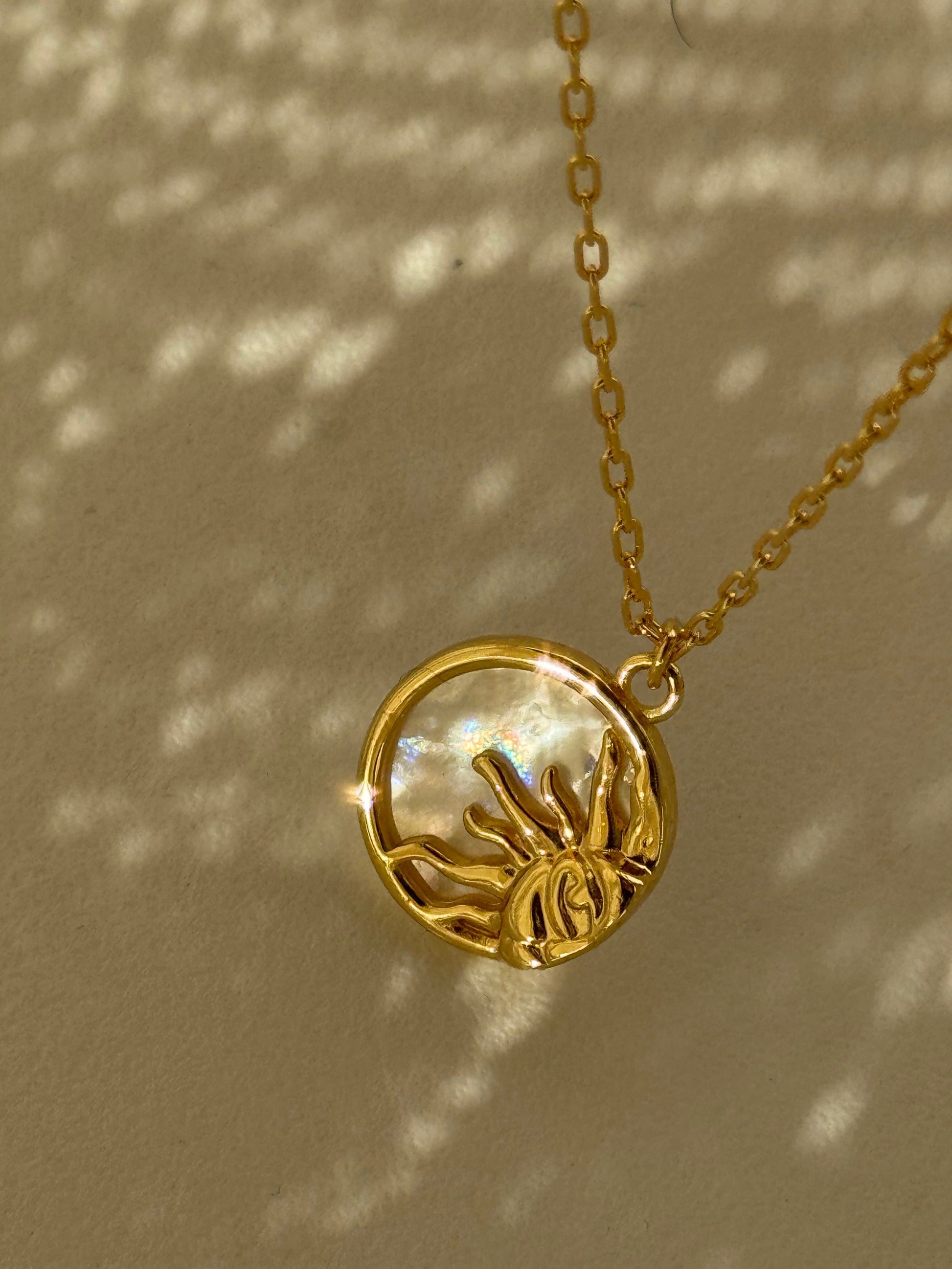 This celestial-inspired necklace brings a touch of Southern beauty to your everyday look. Featuring delicate sun and mother of pearl, each piece shimmers softly with natural iridescence. The layered shine catches the light beautifully, making it perfect for both casual days and special evenings.
